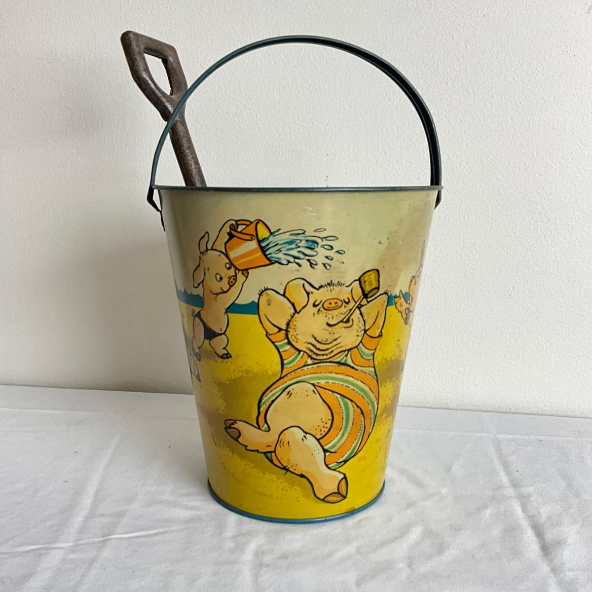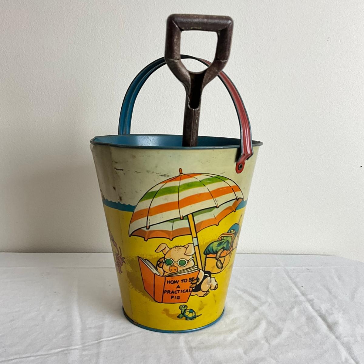 D860 Antique T. Cohns "How To Be A Practical Pig" Sand Pail With Shovel
