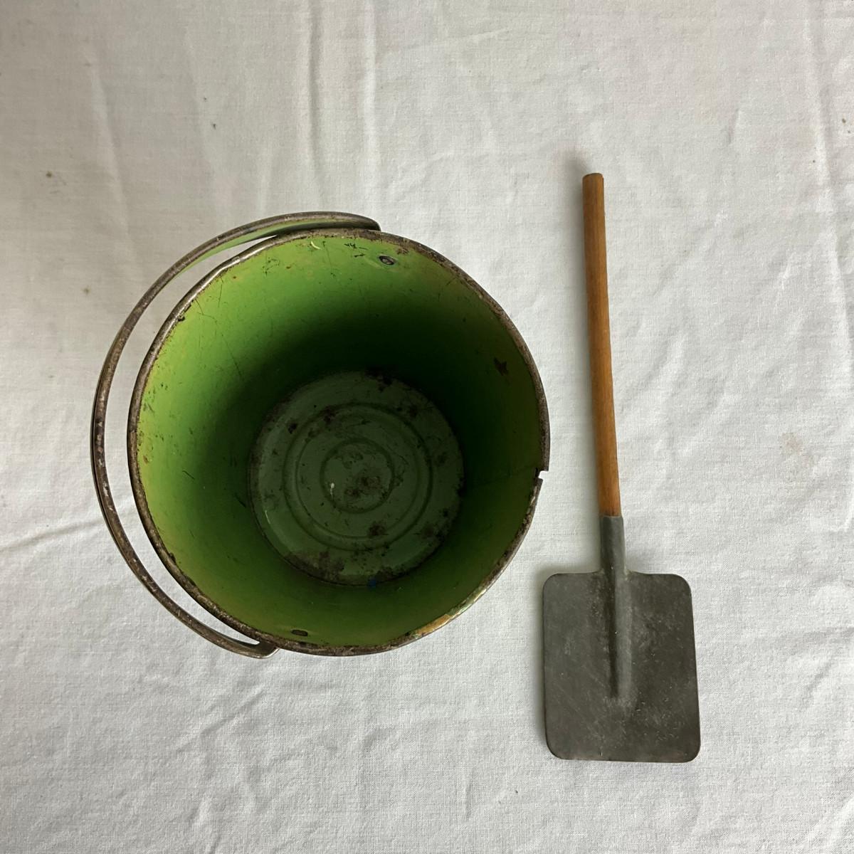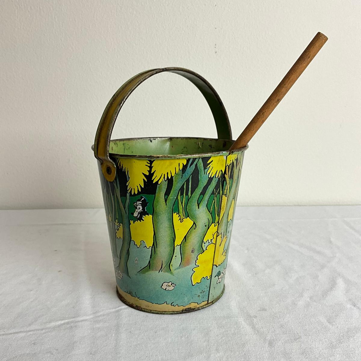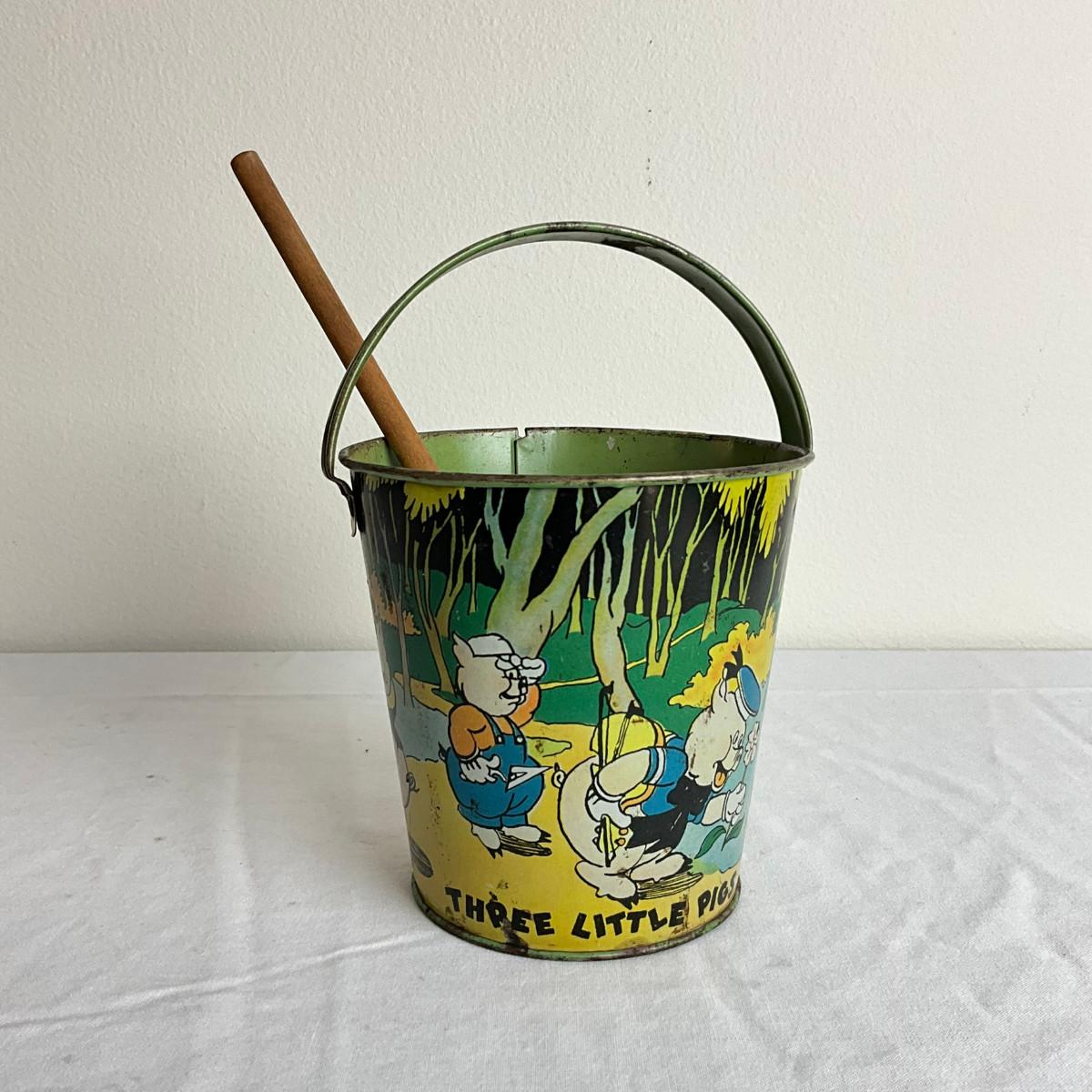 D862 Antique Three Little Pigs Sandpail With Shovel
