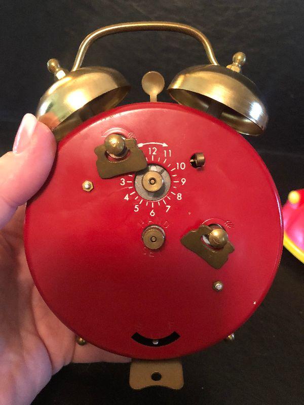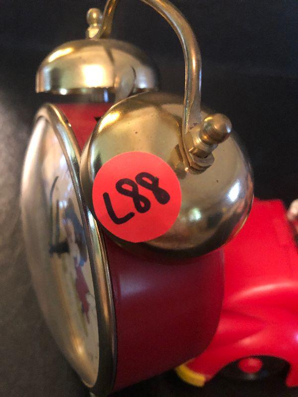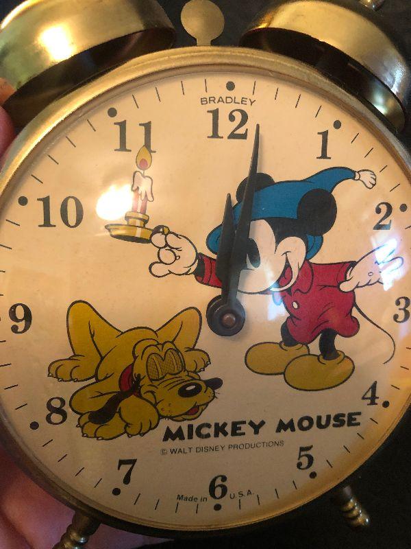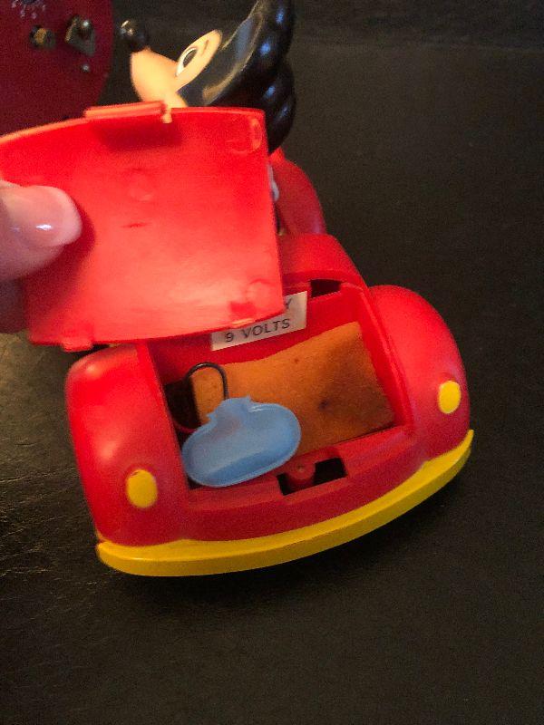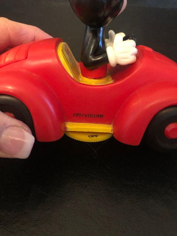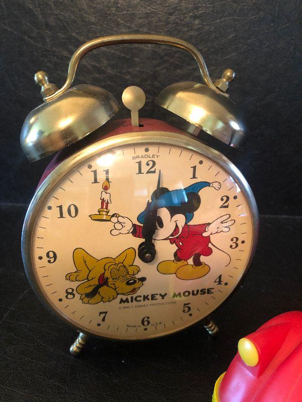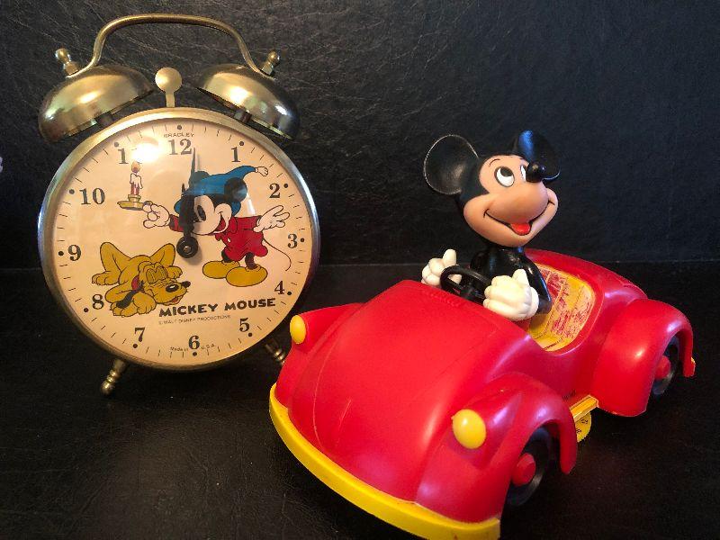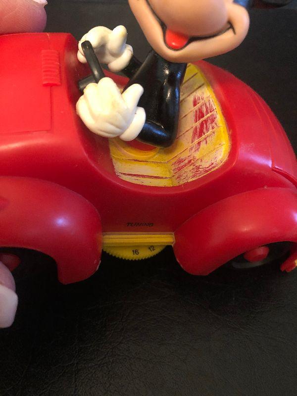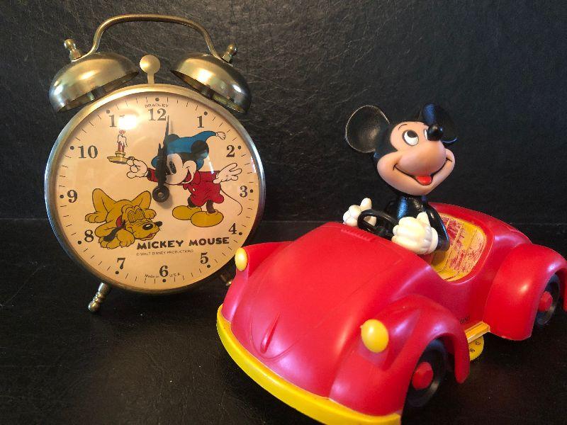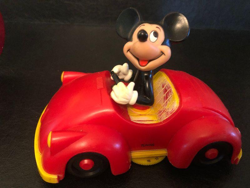 Vintage Micky Mouse driving a car radio. Vintage Mickey alarm clock