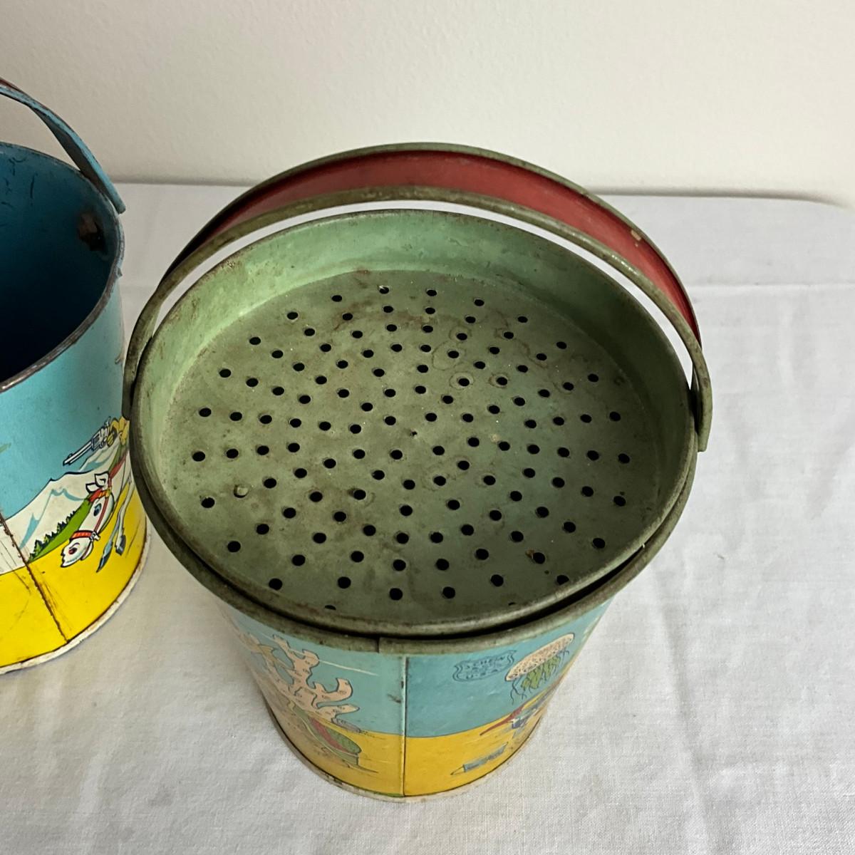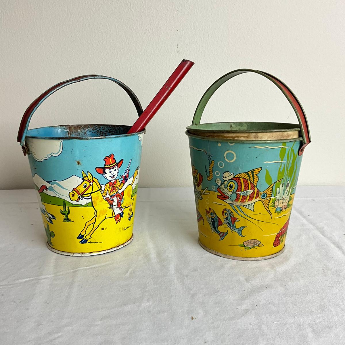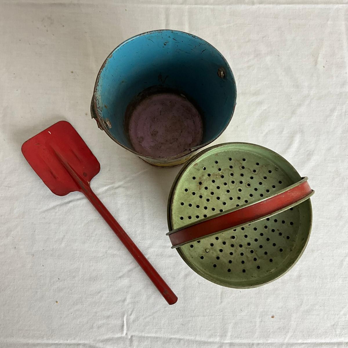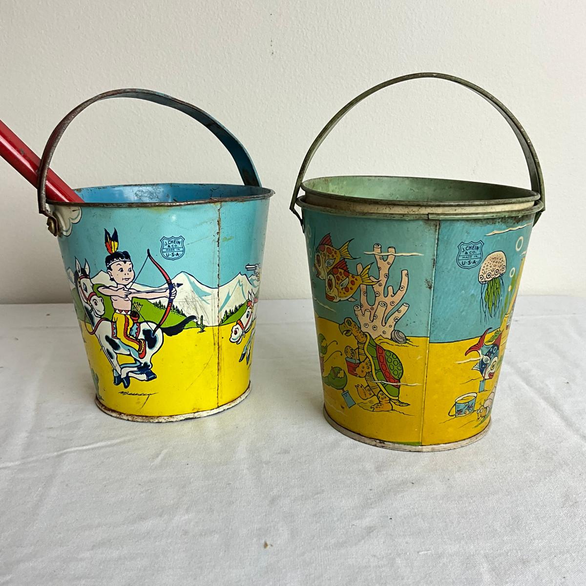 D884 J. Chein Two Sand Pails With Shovel & Strainer