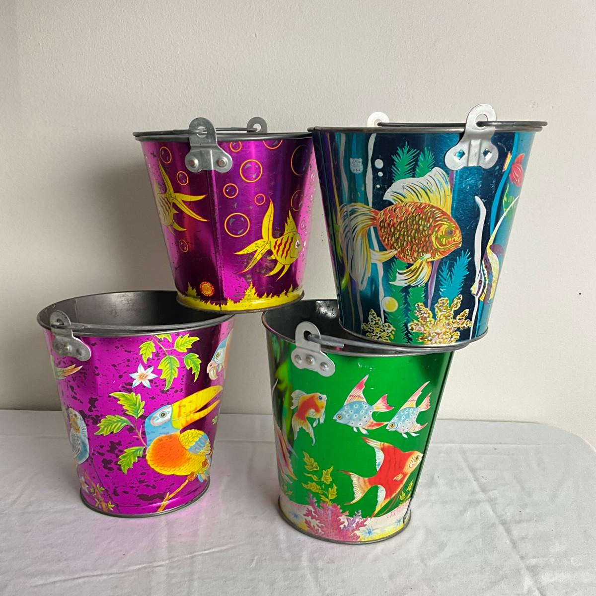 D888 Lot of Four Ohio Art Co. Bird & Fish Sand Pails