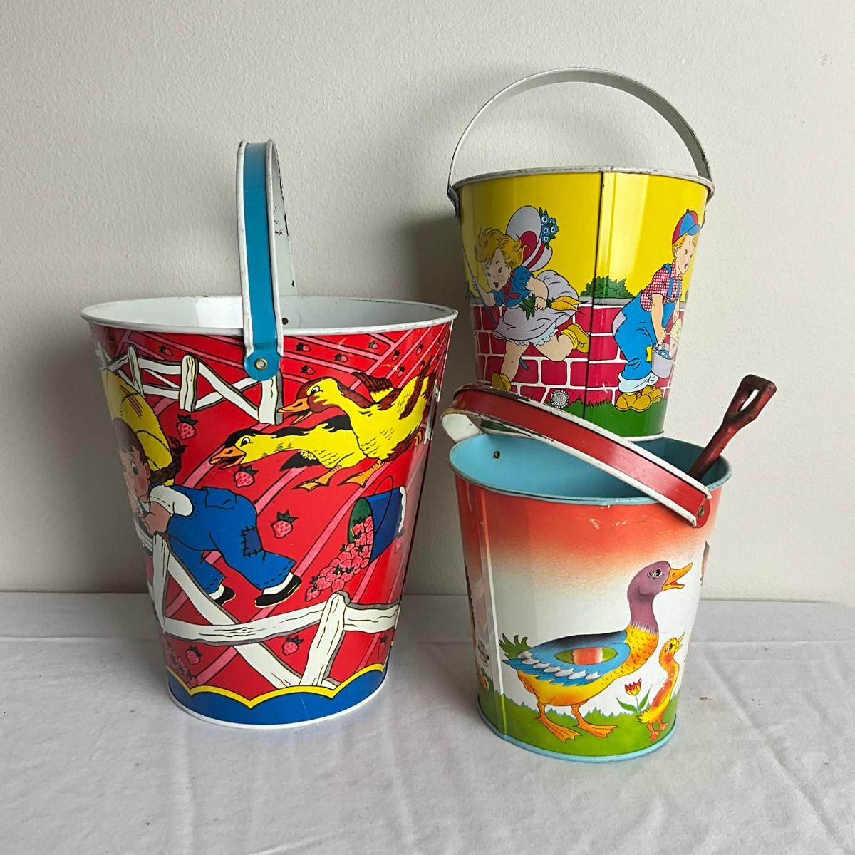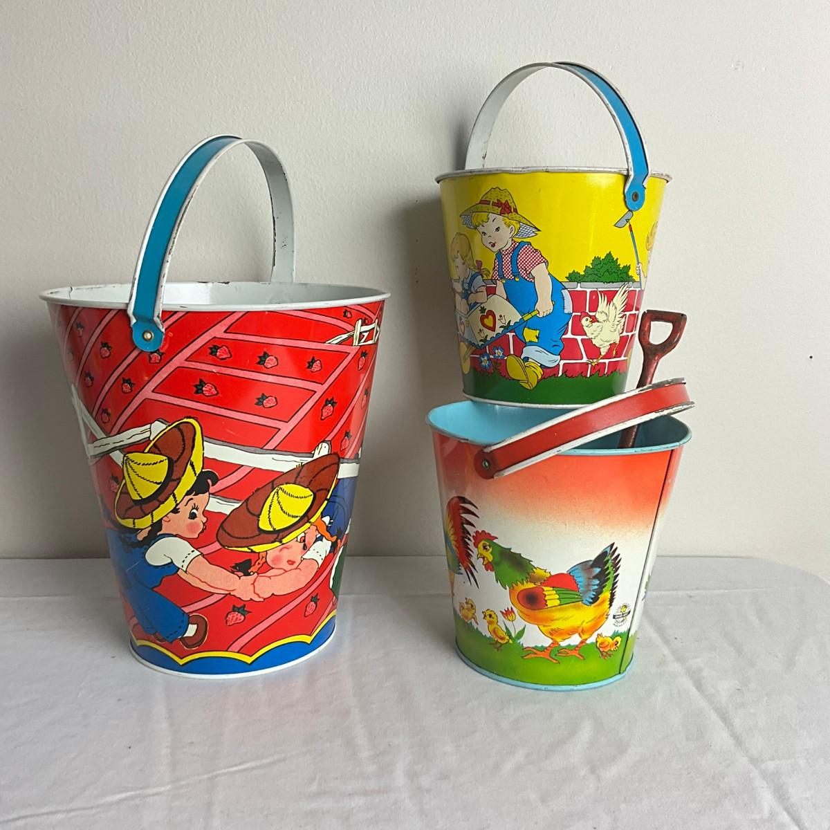 One small depicts Rooster, other small depicts boy on farm, both measure: 5.25" high x 5" diameter