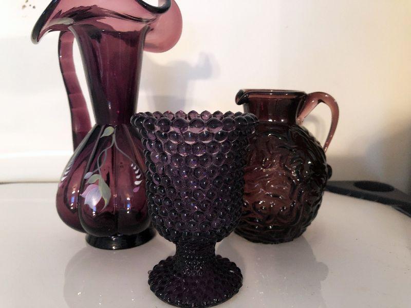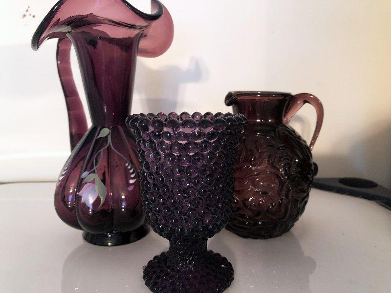Beautiful lot of collectible purple glass. Please see all pictures for exact contents of the lot, condition of the items, and if measurements if taken. Thank you for looking and have fun bidding.