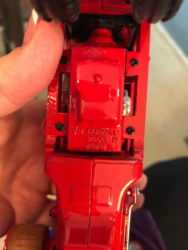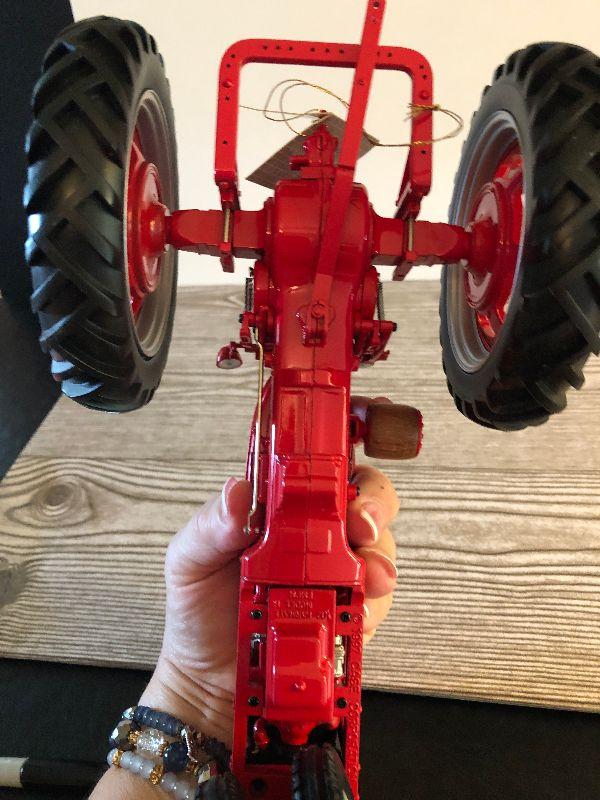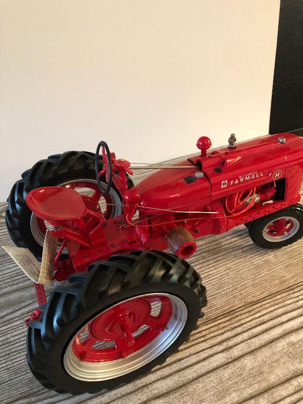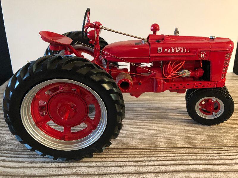 Red Farmall model H die cast model tractor. Please see all pictures for contents of the lot, the condition of items in the lot, and measurements of the items if taken. Thank you for looking and have fun bidding.