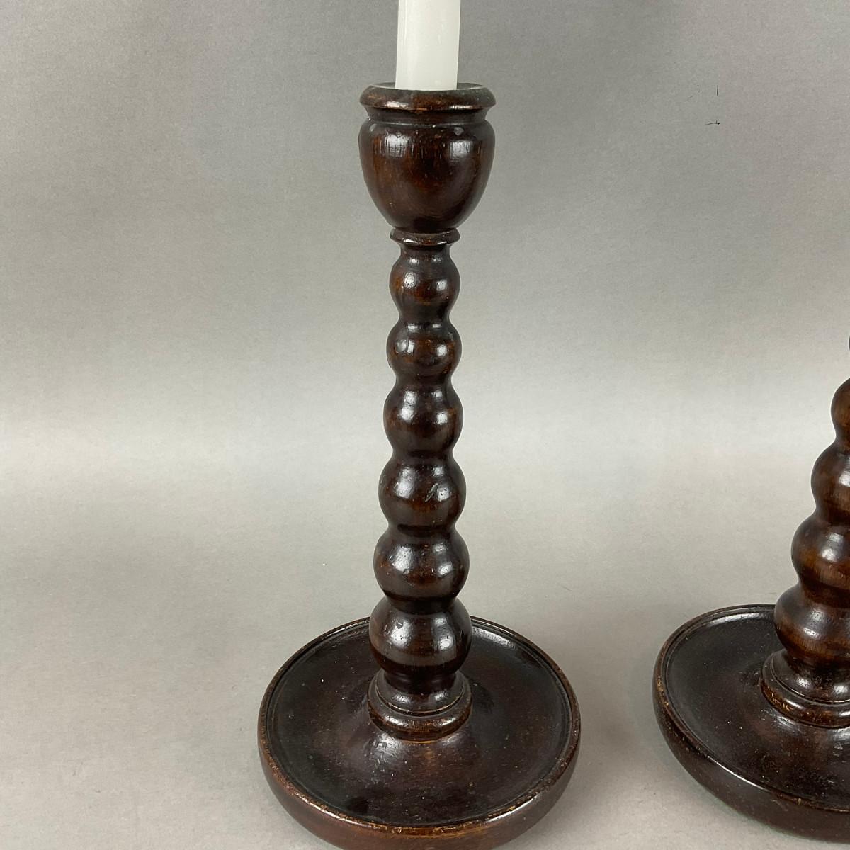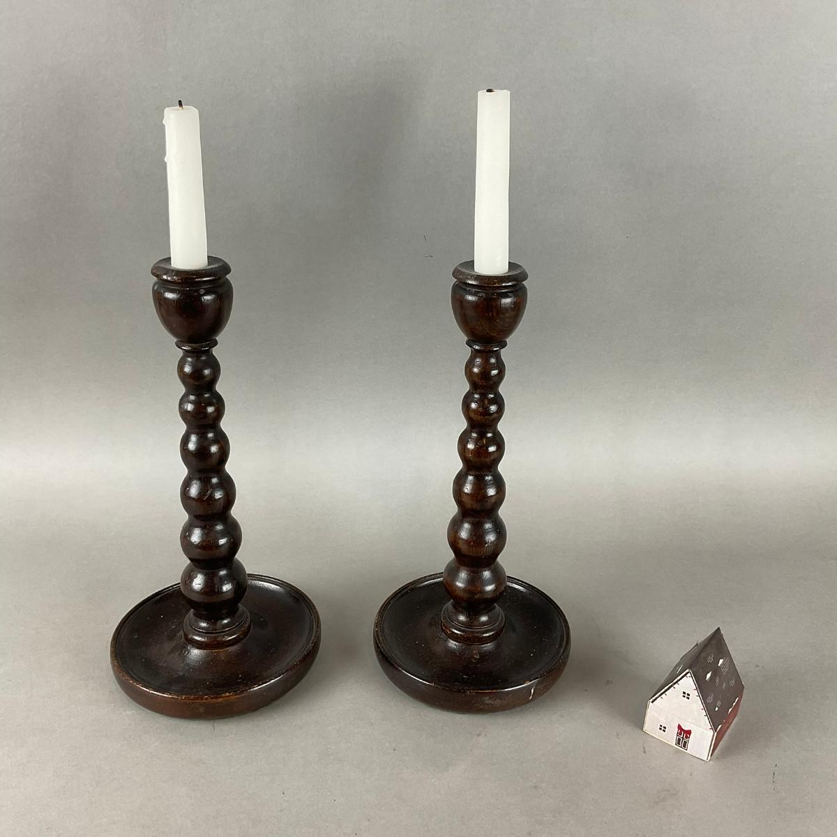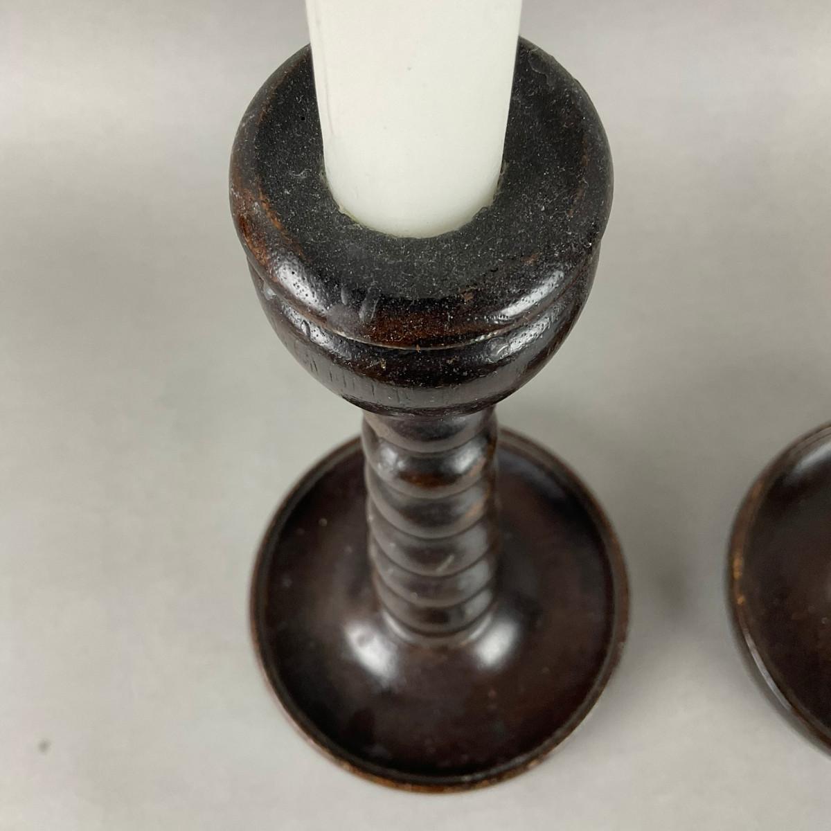 L902 Circa 1920s English Descending "Bobbin" Solid Wood Candlestick Holders