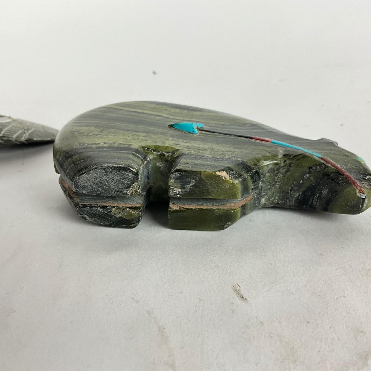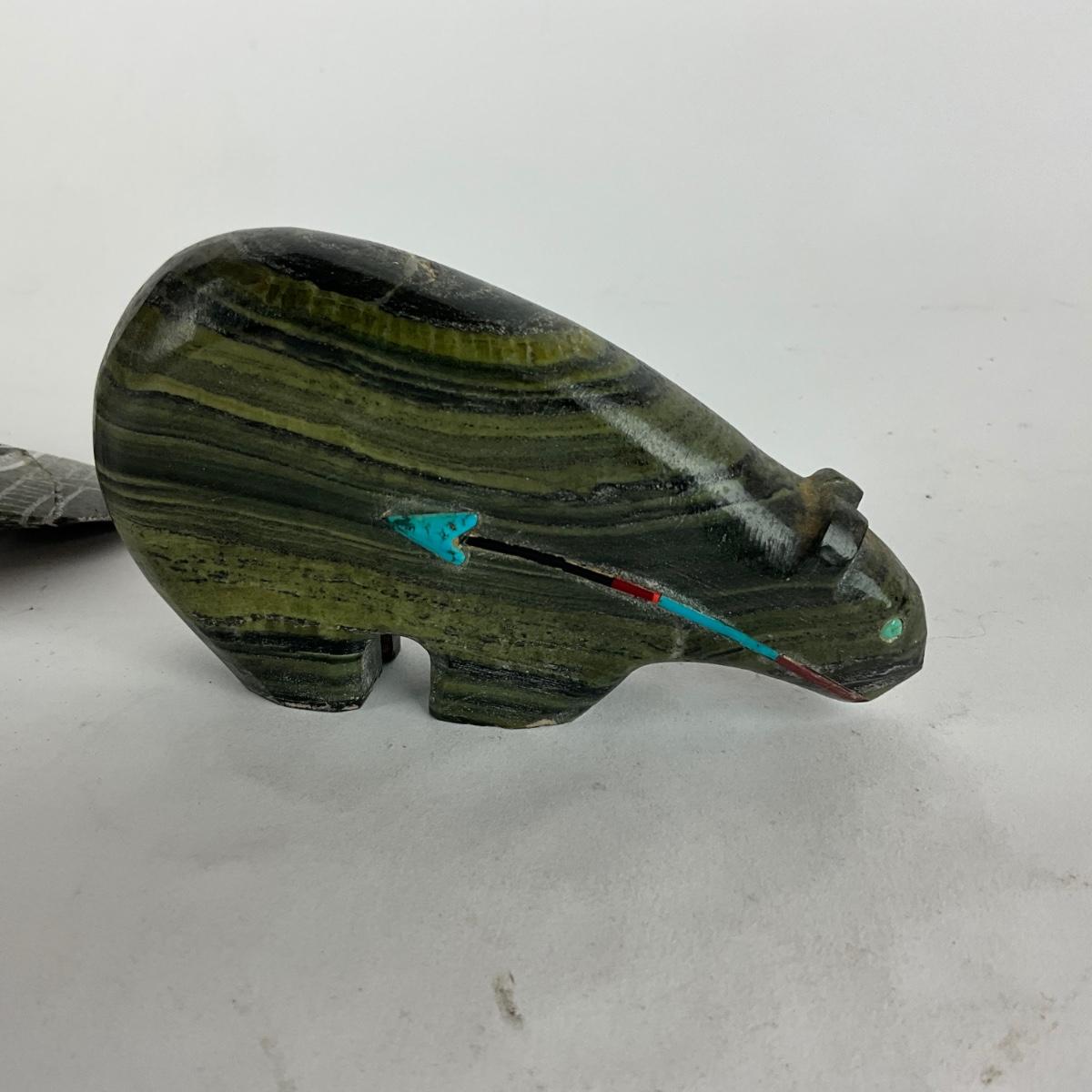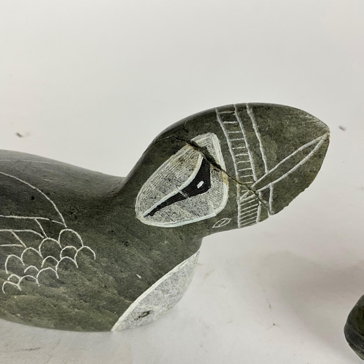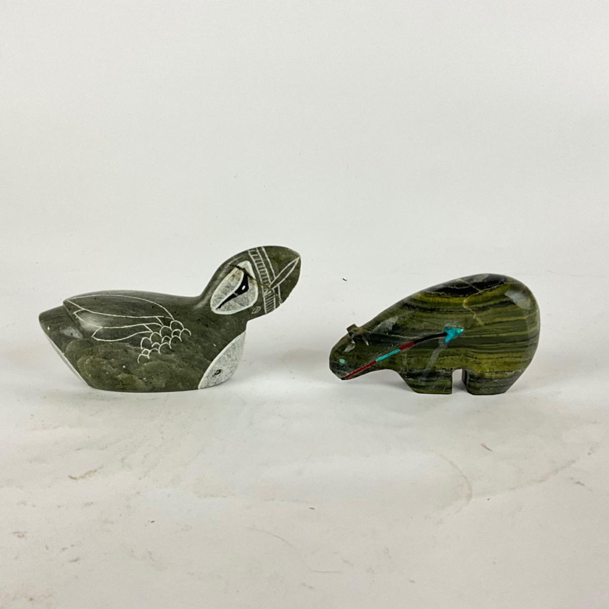 L905 Zuni Bear Stone Sculpture and Puffin Inuit Sculpture