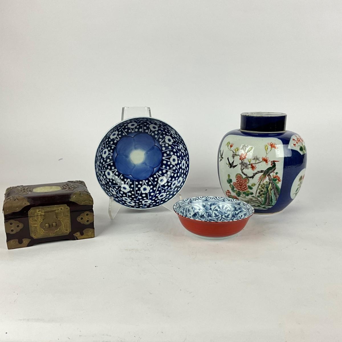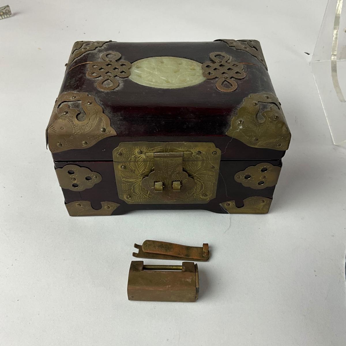 L906 Lot of Asian Pottery and Jade Inlay Jewelry Box