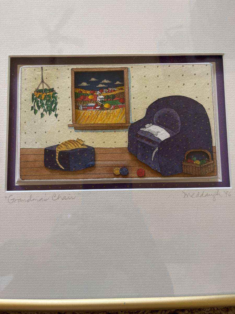 See pics. Top pic 13.5x15.5, Grandmas chair pic 14x11