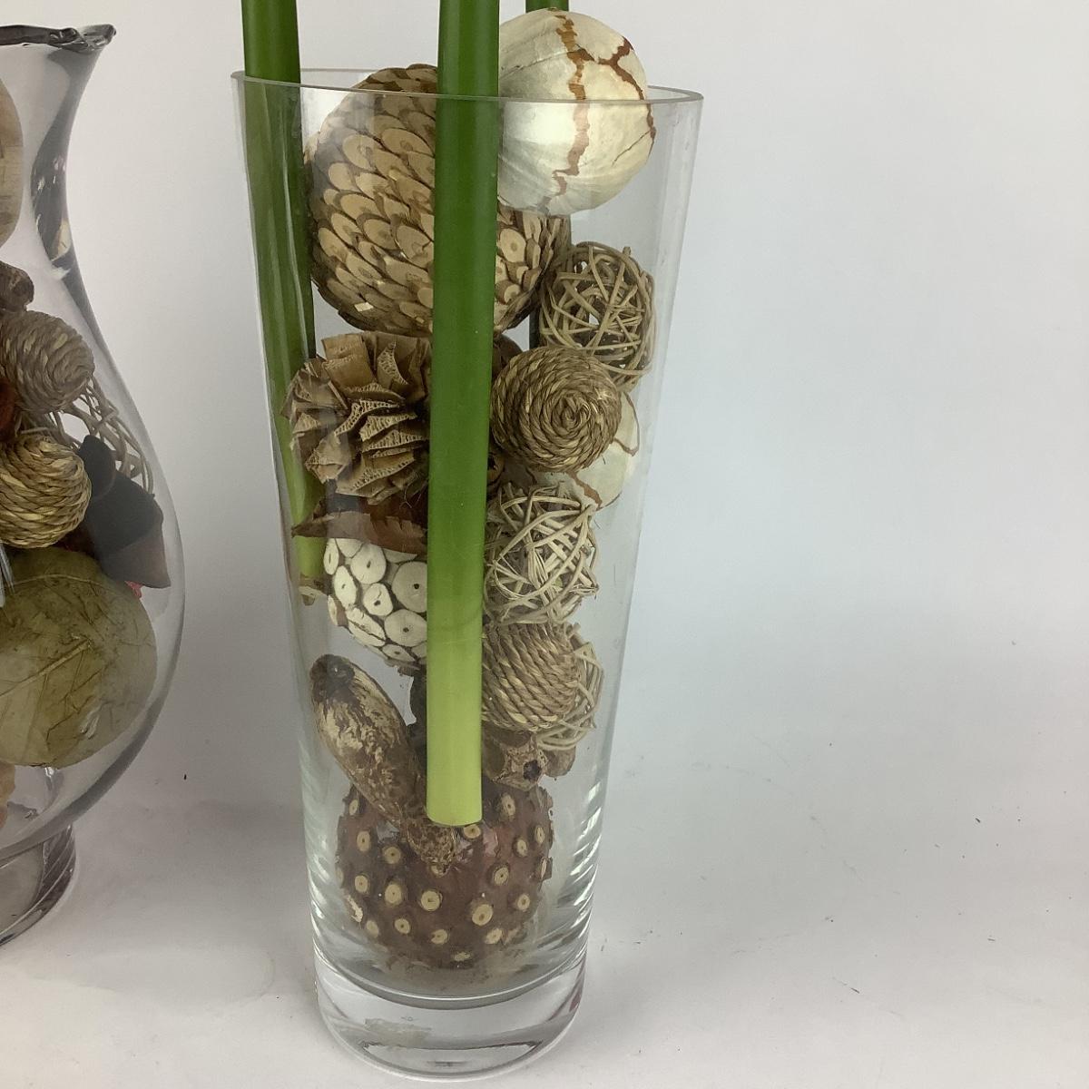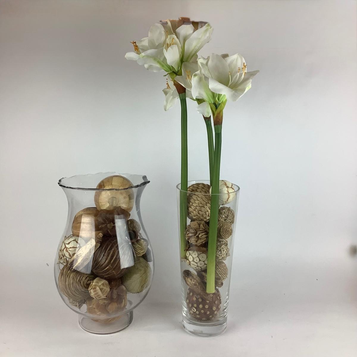 L928 Glass Decorative Vases with Wooden Balls and Amaryllis