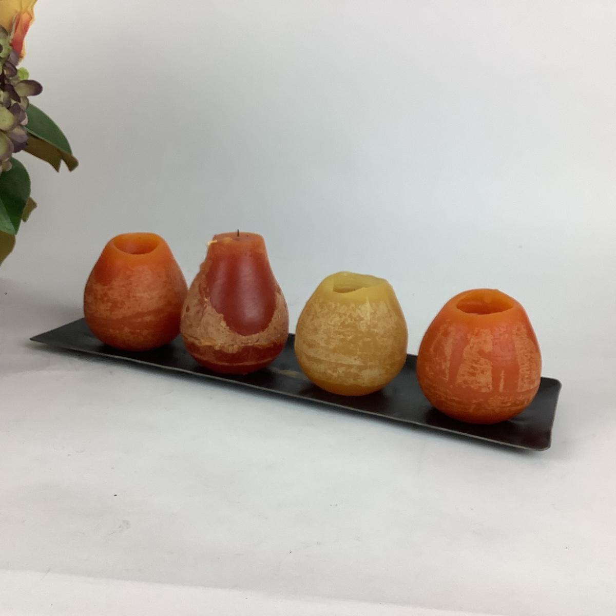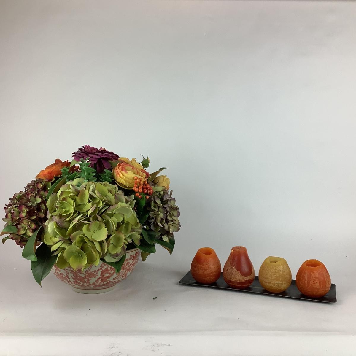L929 Silk Floral Arrangement in Asian Bowl with Pear Candle Display