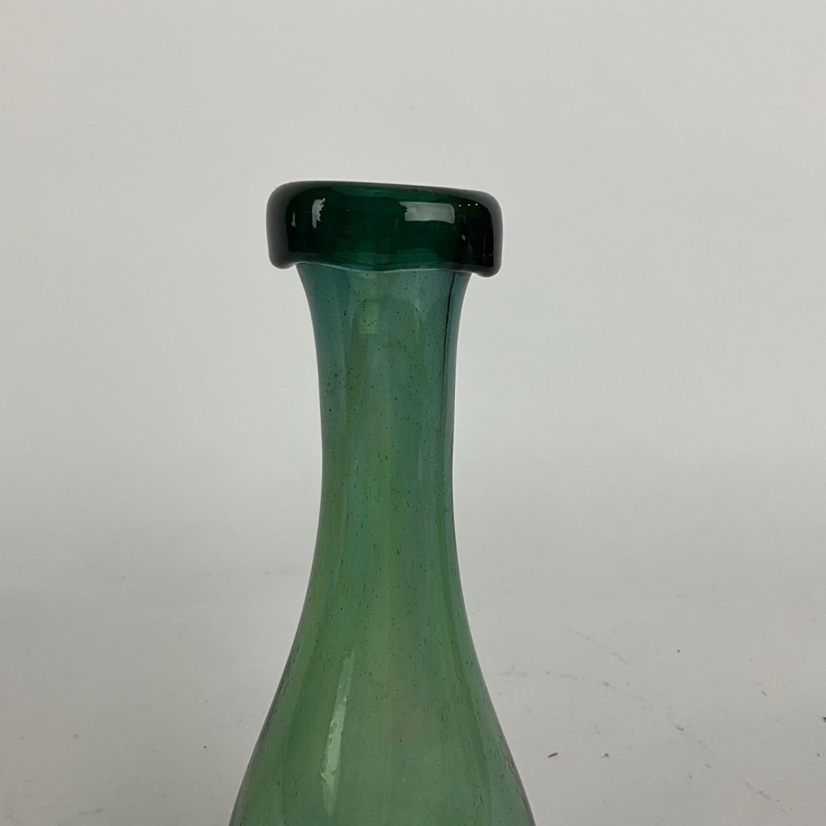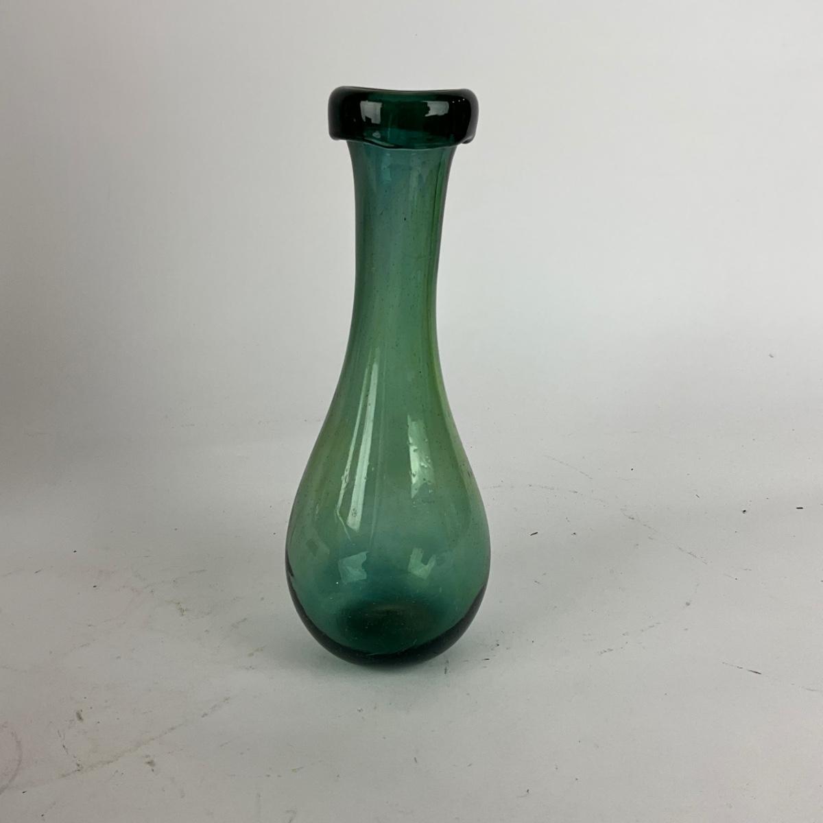Smaller glass vase is handblown,