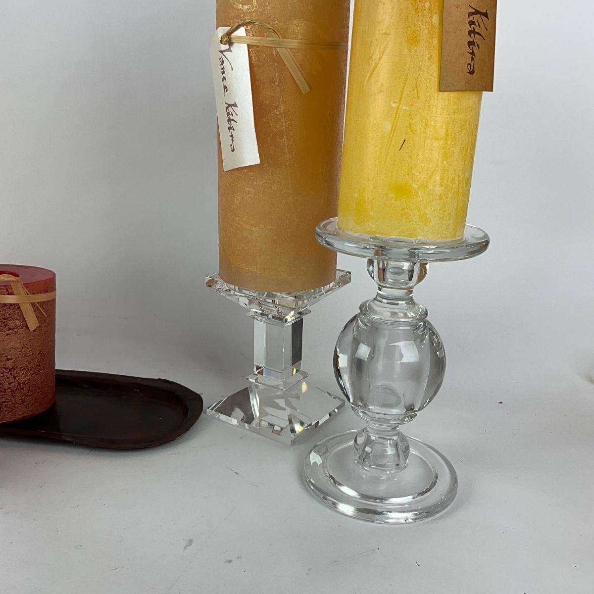 L949 Large Yellow Hurricane Candlestick with Glass Candlesticks and New Candles