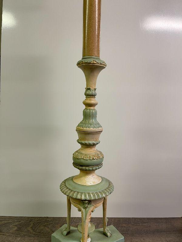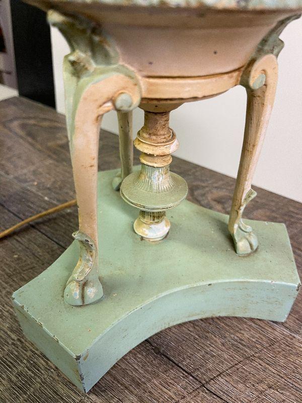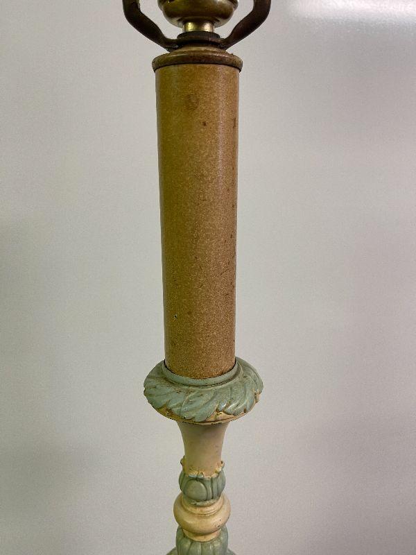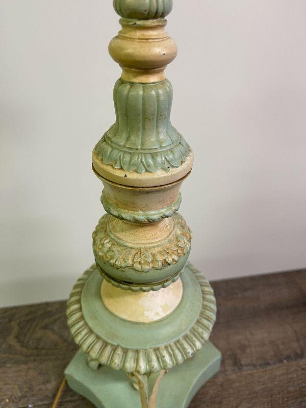 This lamp is even prettier in person and has an incredible shabby chic design, with its age! Shade not included. Please see pictures for condition and measurements if taken. All items are sold as found and if furniture, you will need to be able to move yourself. Thank you for looking and have fun bidding! As always, thank you for being a Treasure Me Hunter!