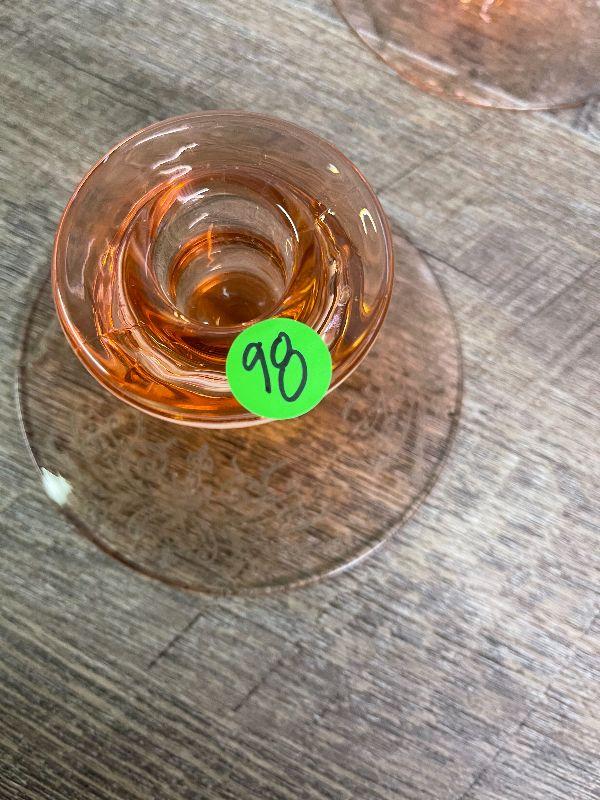 L98: Pair of Vintage Pink Depression Glass Candlesticks.