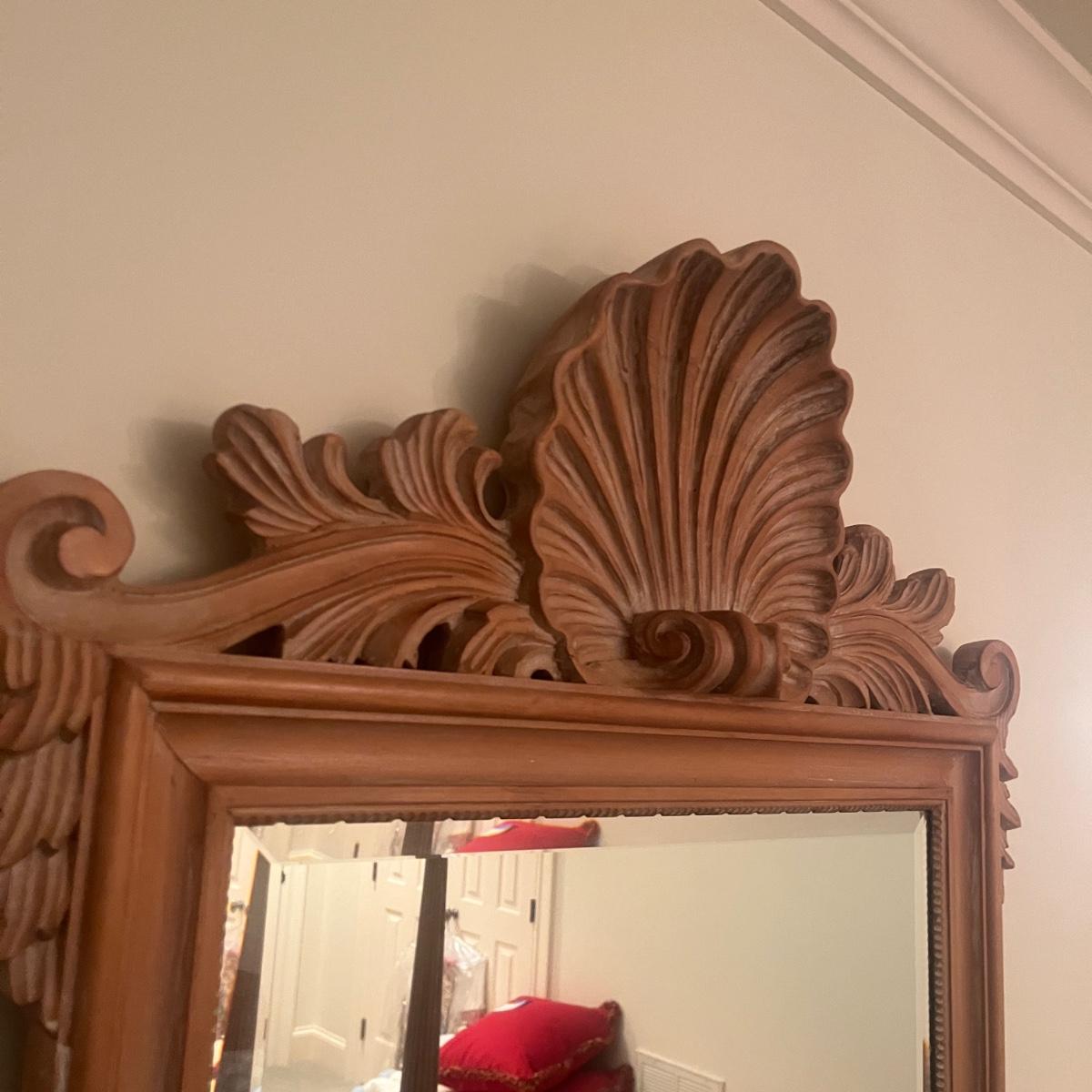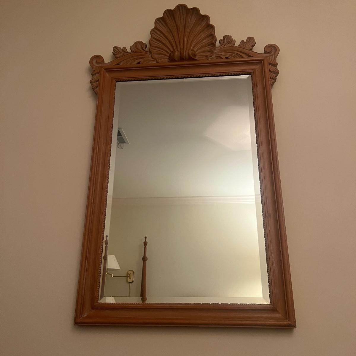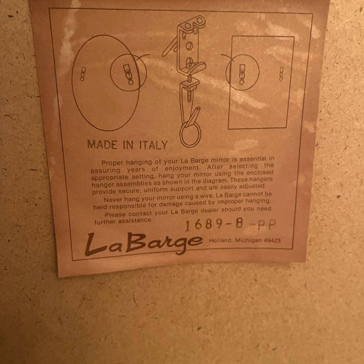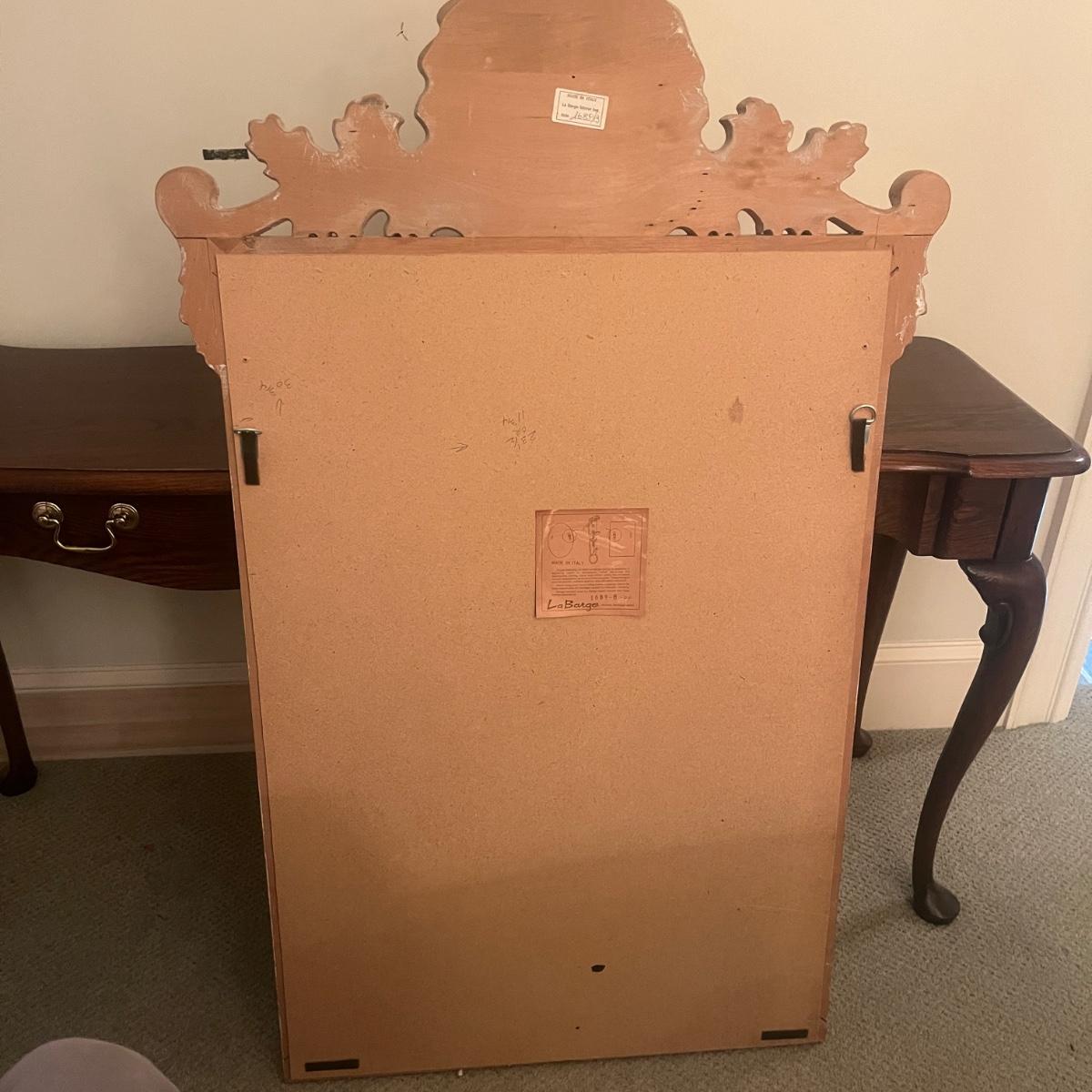 Lot includes a La Barge carved wooden framed beveled mirror. Frame measures 29” x 3” x 46”H.
