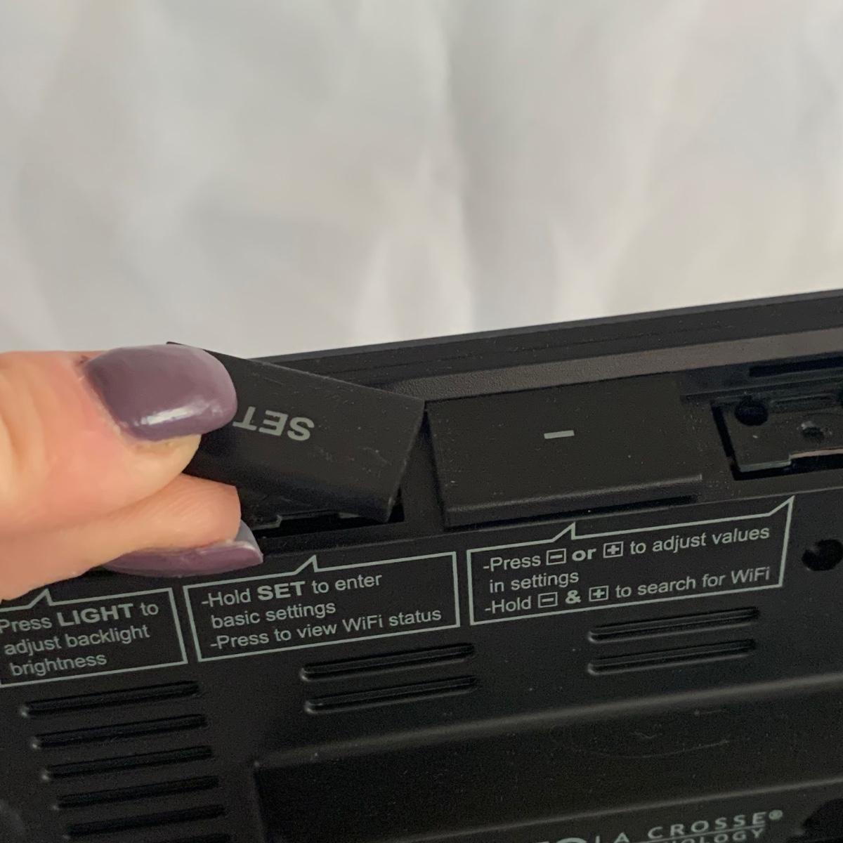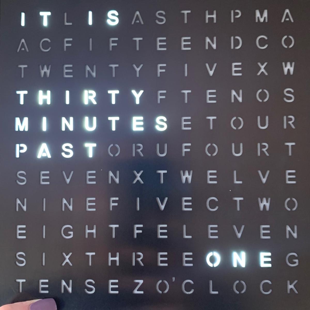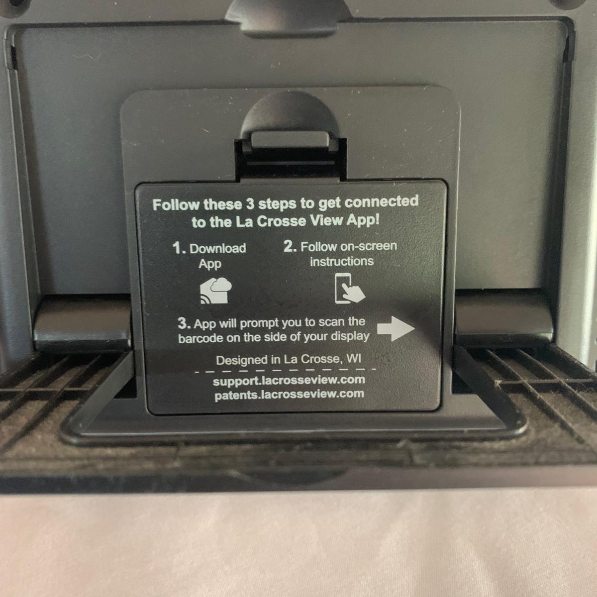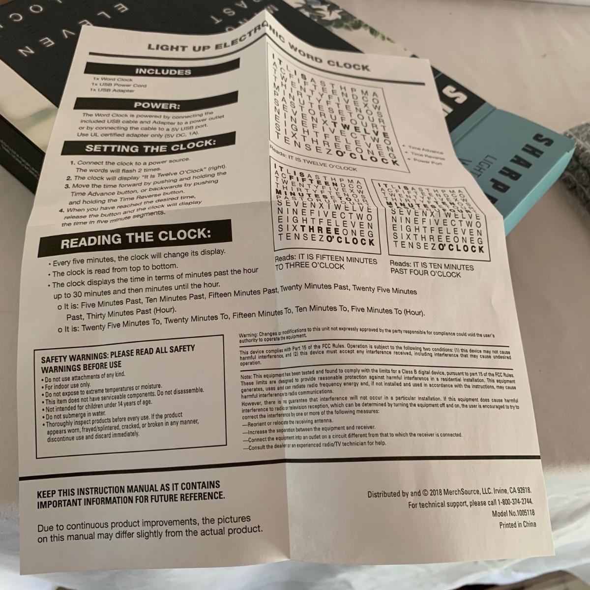 La Crosse Technology color weather station, Model C84343, displays the date & time, forecast, outdoor temperature, indoor temperature, and more. Item functioned when tested. It appears to be missing a button and has two other loose buttons, see photos. Outdoor sensor is included, but not in the pictures here. The Sharper Image Light Up Word Clock appears brand new in its original box. The clock measures 8” x 8”.