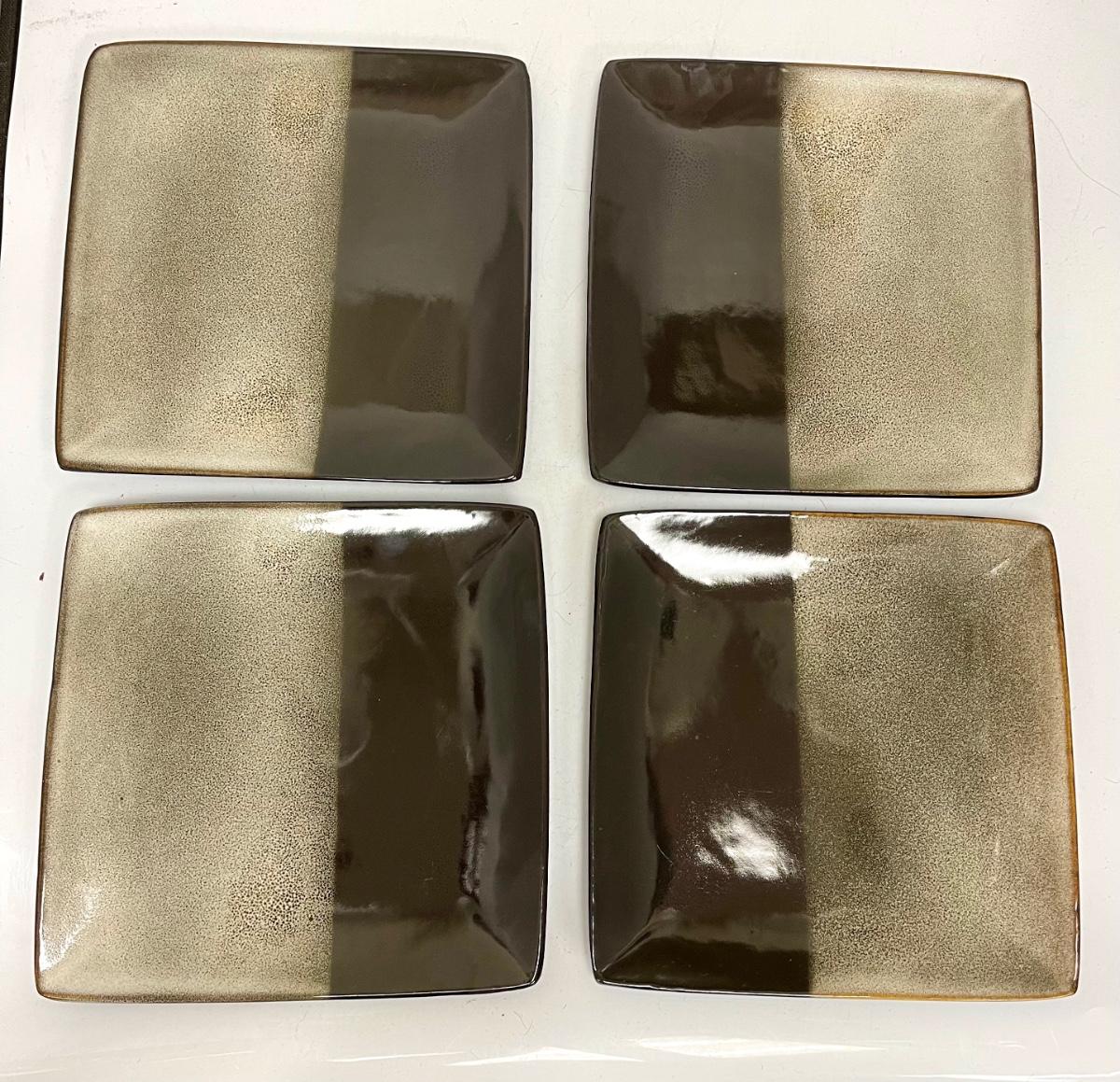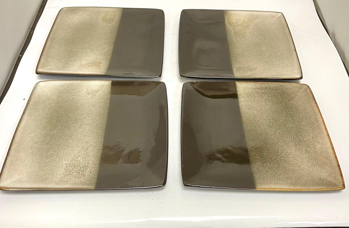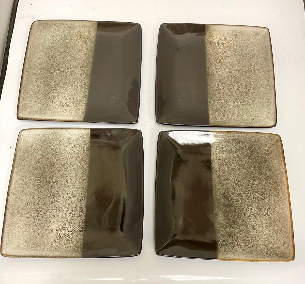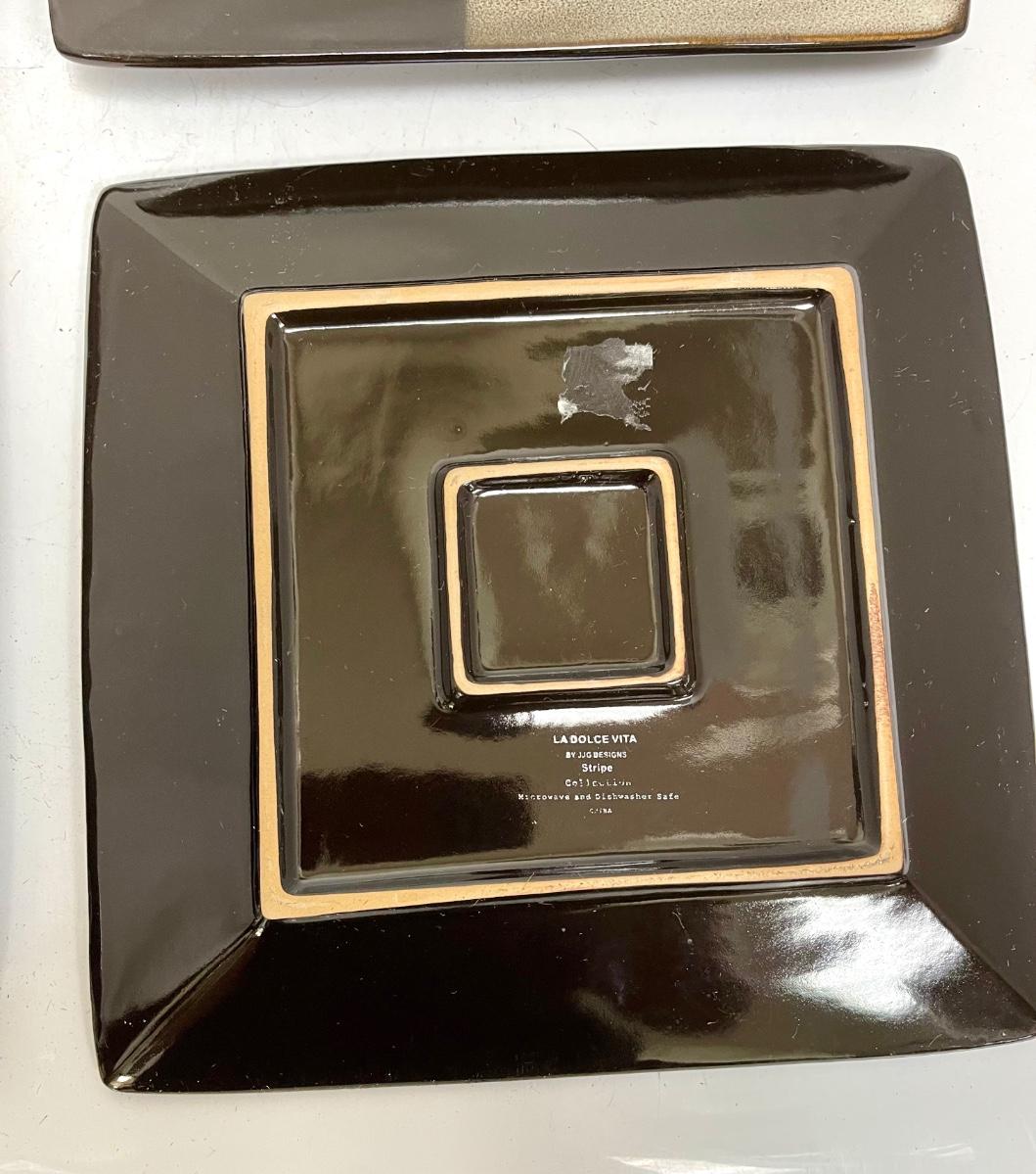 La Dolce Vita Stripe Collection Ceramic Square Shaped Dinner Salad Dessert Plates. Set of 4. In good condition.