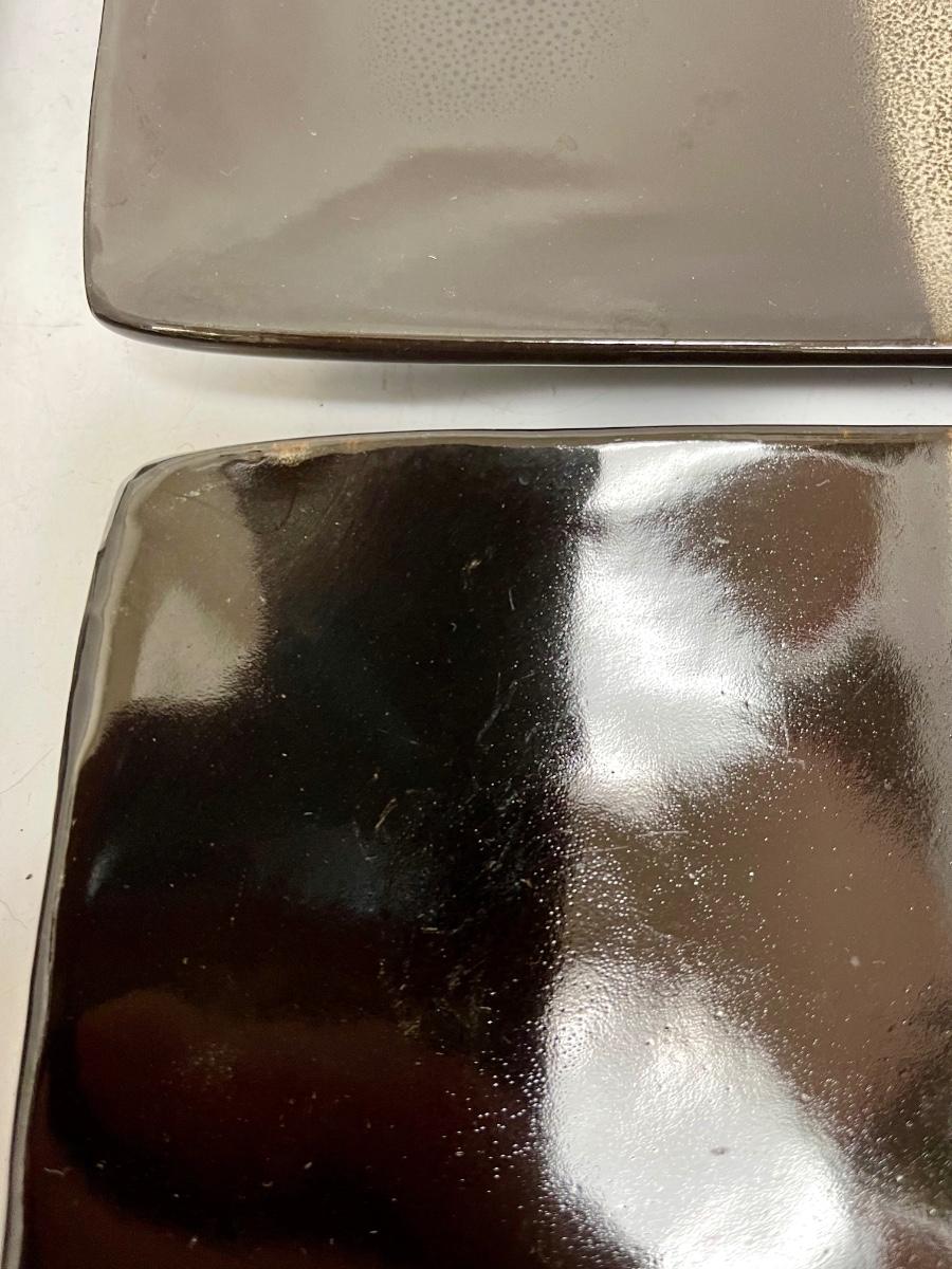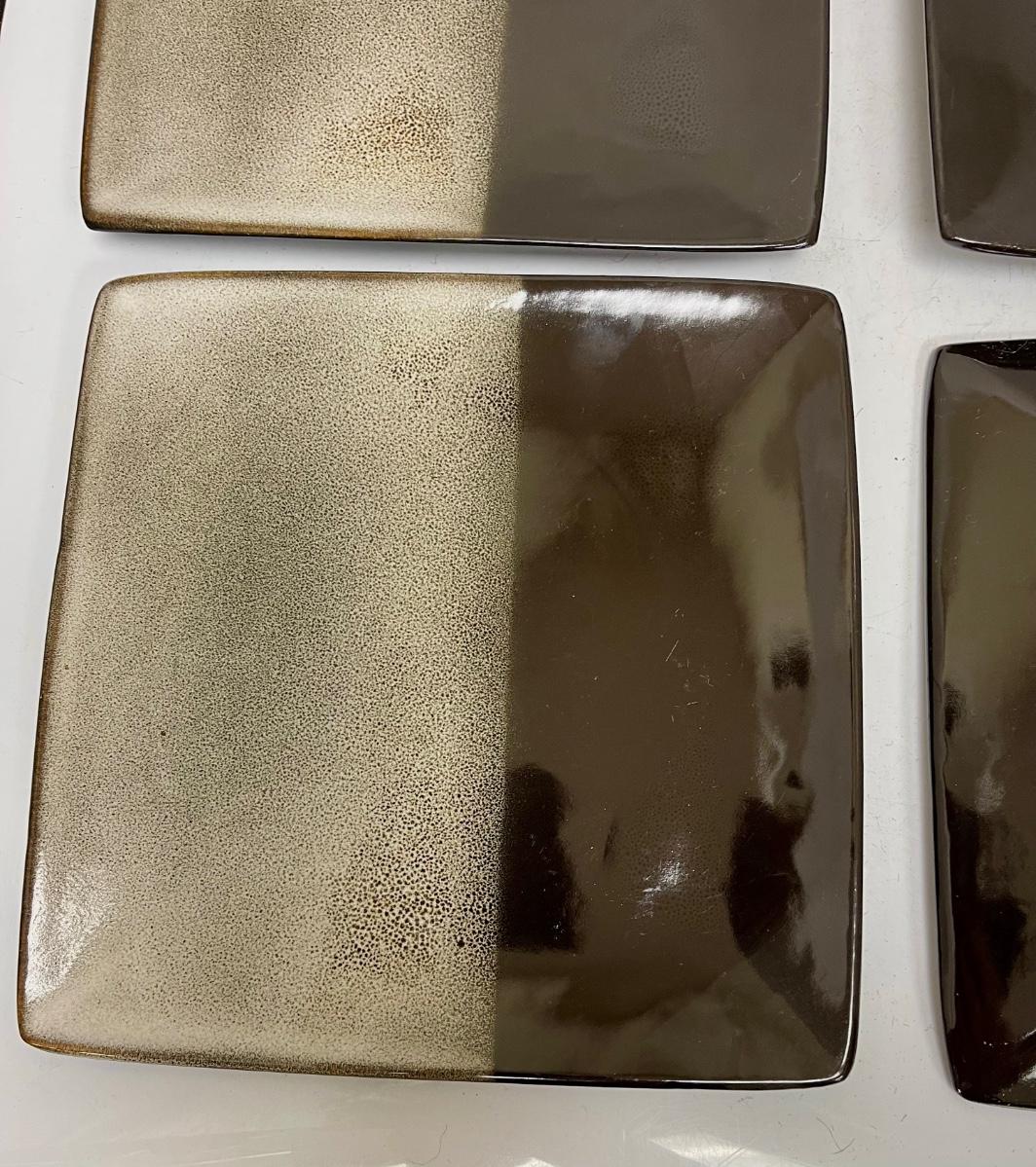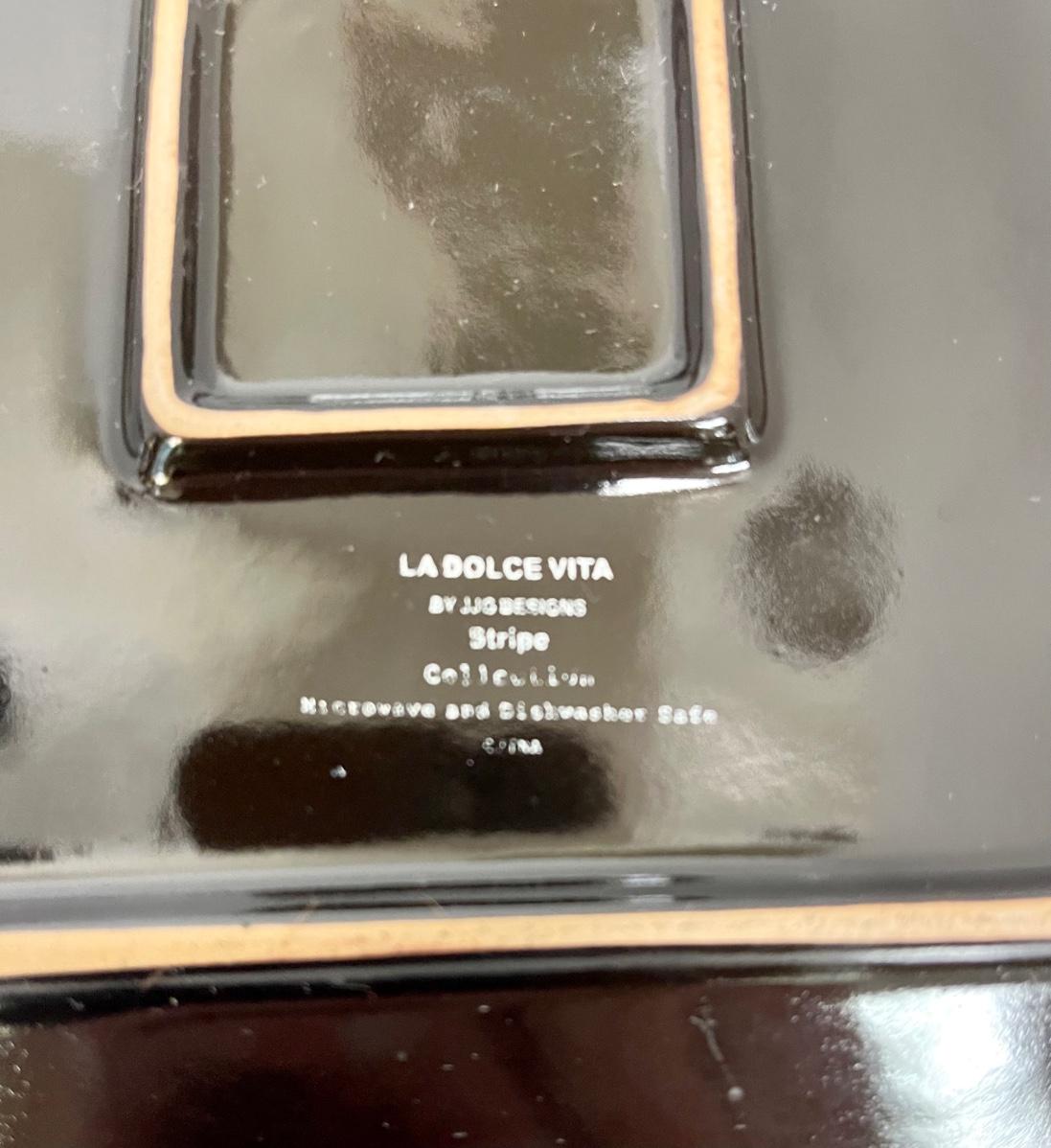 La Dolce Vita Stripe Collection Ceramic Square Shaped Dinner Salad Dessert Plates. Set of 4. In good condition.