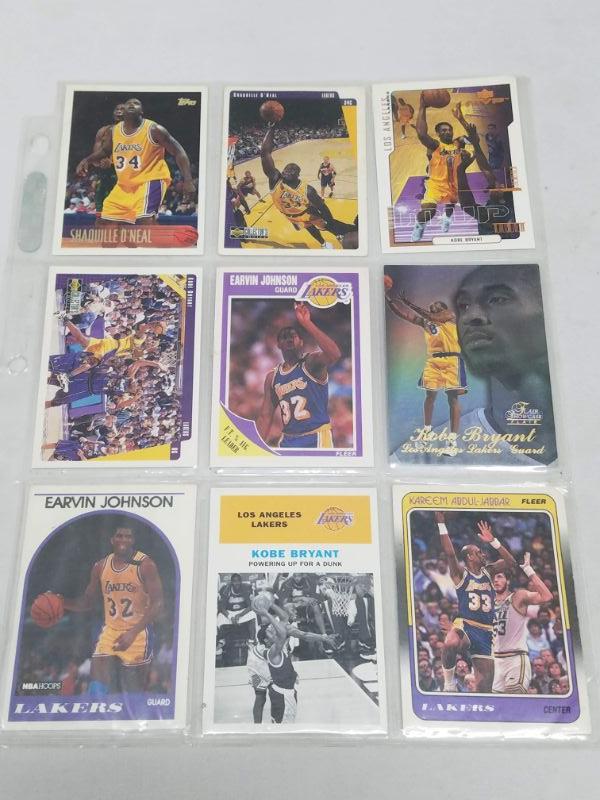 LA Lakers NBA Basketball Cards, Qty 9, 1988-2000