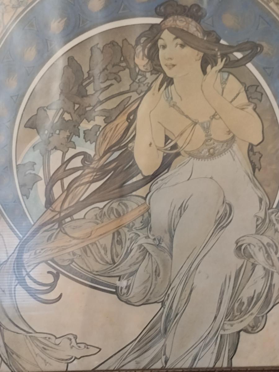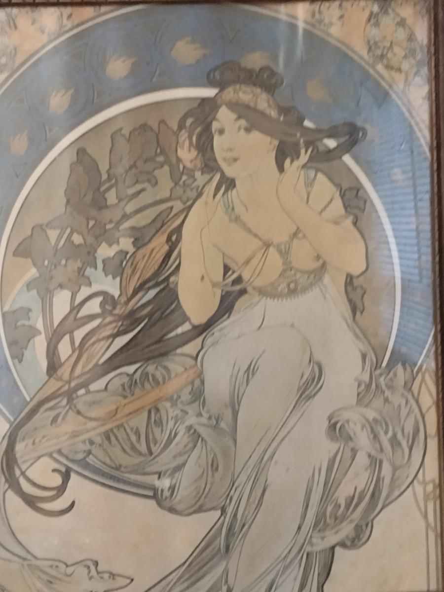 "La Musique" by Alphonse Mucha Art Nouveau Style Print- Framed Under Glass- Approx 24" x 19 3/4".