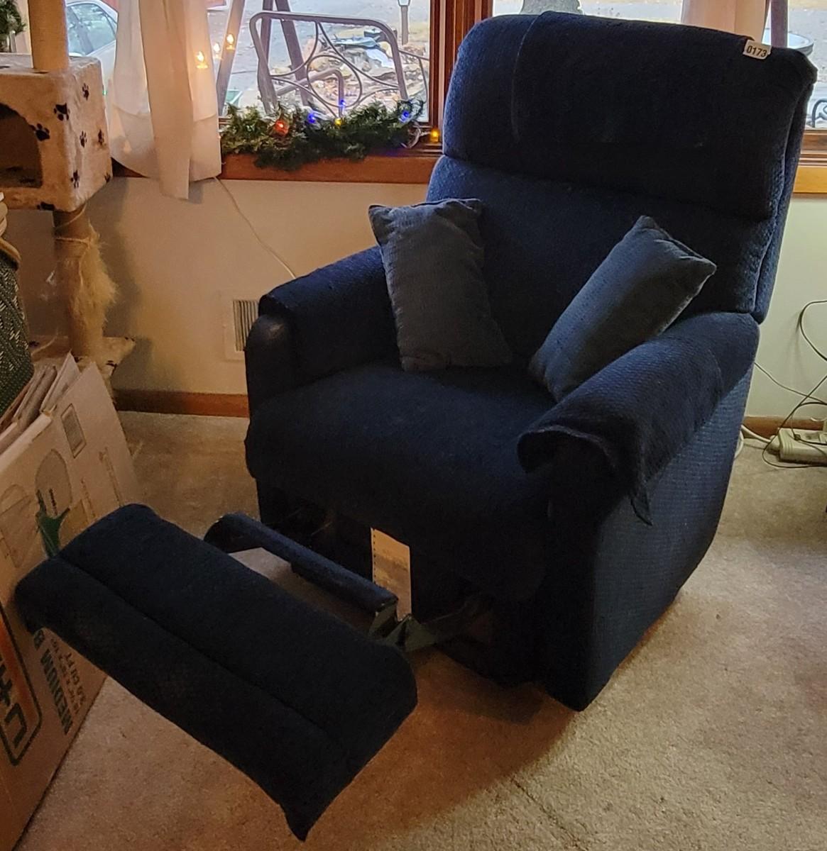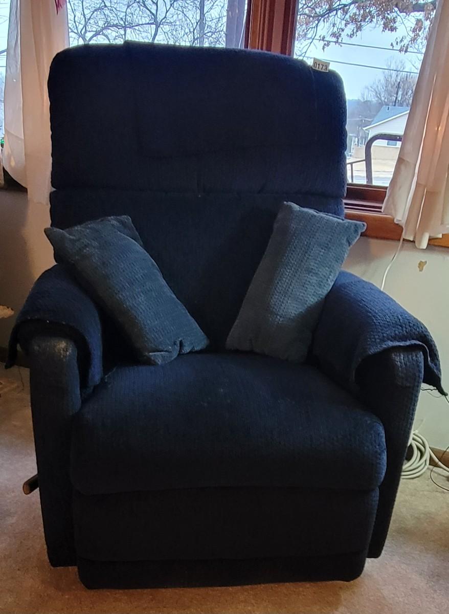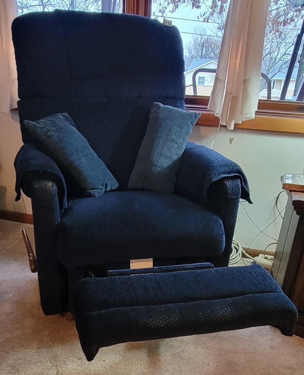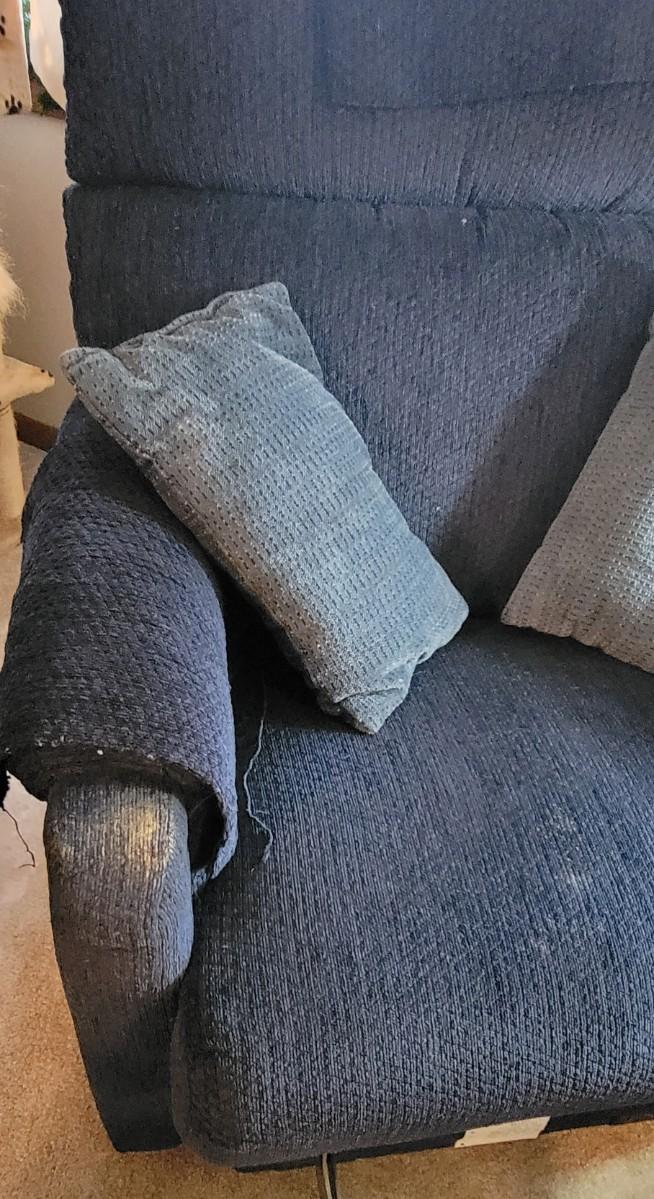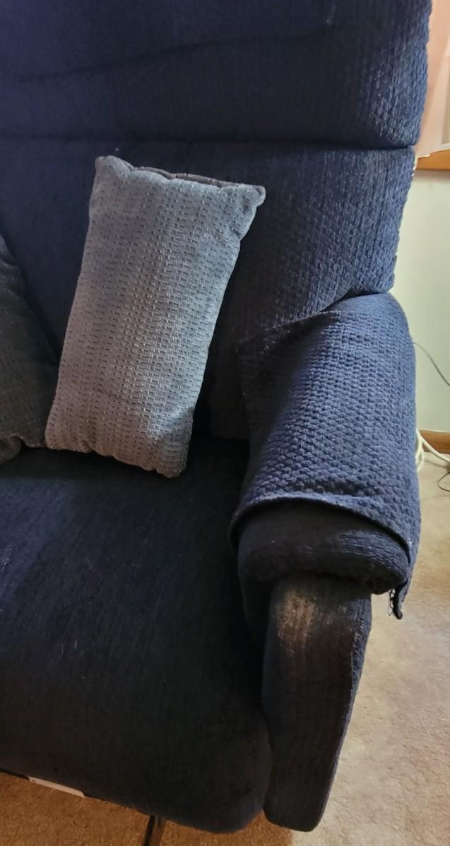 There is wear seen on the front of the arm rest. This item is comfortable and all mechanisms work as they should.