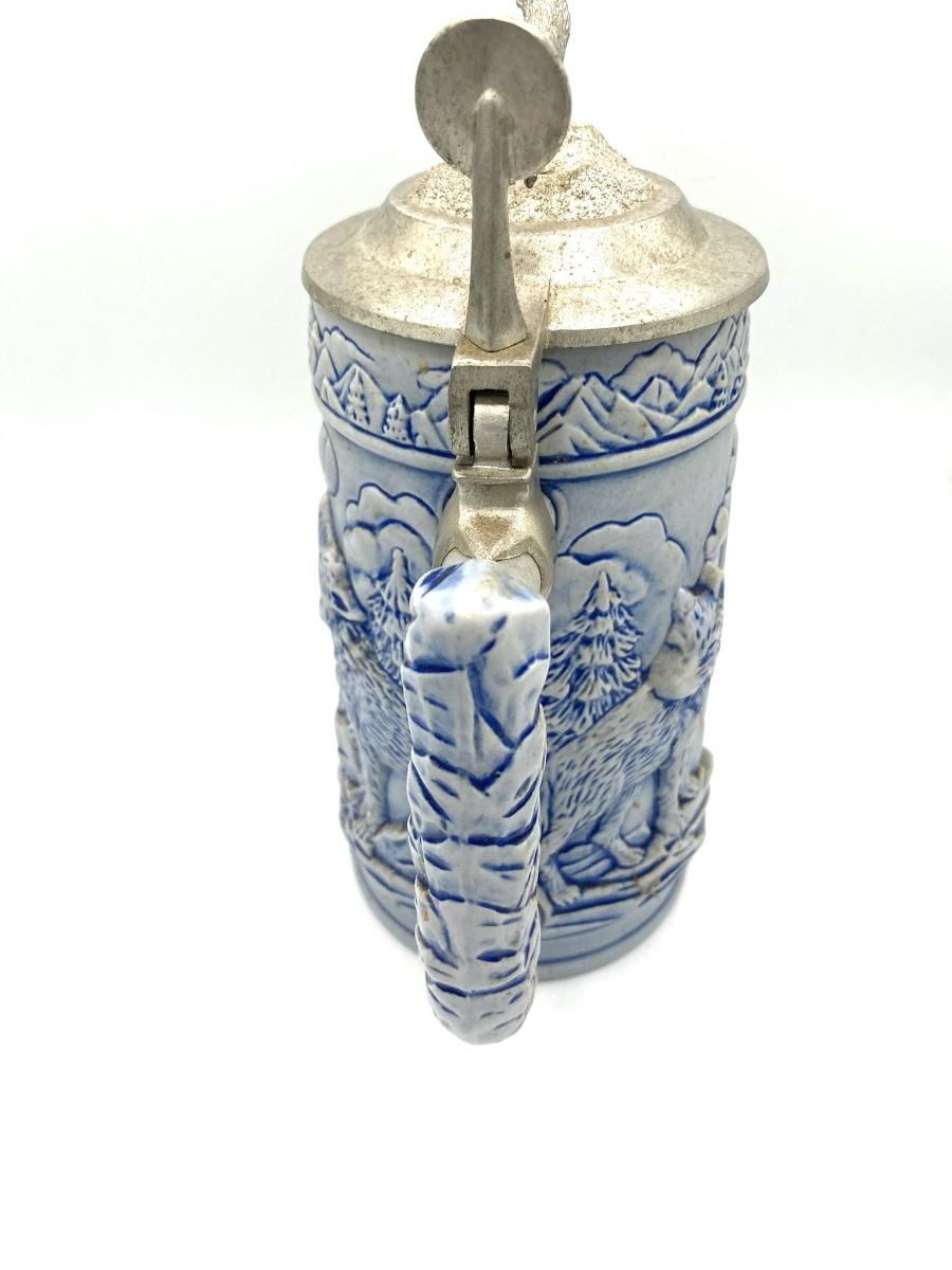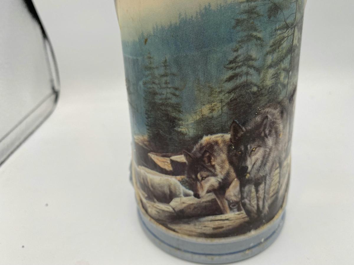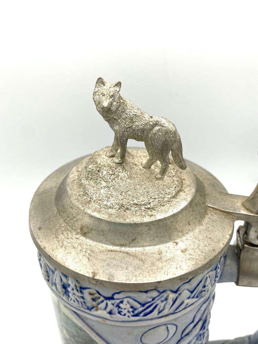 Lonton Crown Tankard, "Scouting The Bluffs' from "The Cry of the Wolfpack" collection,. Tankard No. F 4265. 9" base to top, handle to front of tankard 6". MINT condition