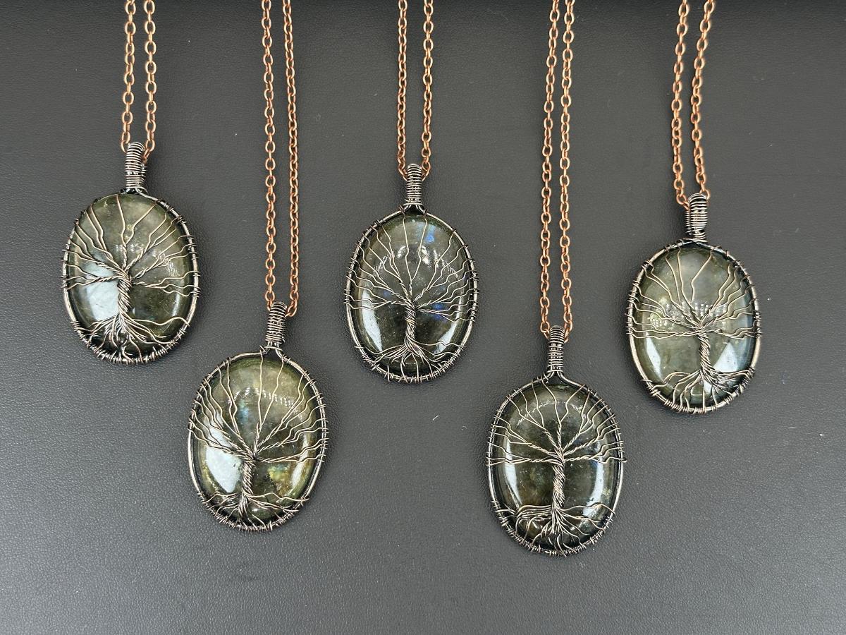 1. Labradorite gemstone Tree Of Life Necklace Lot