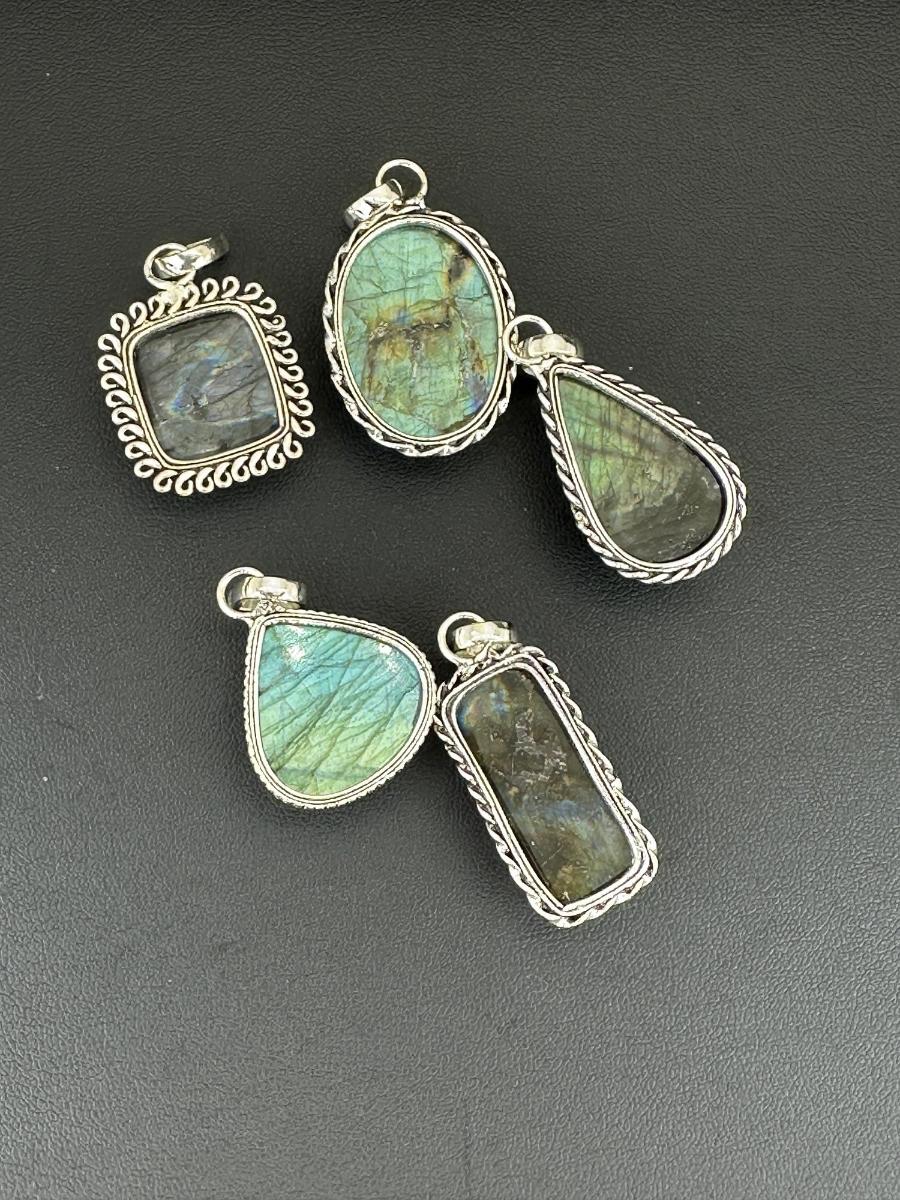 1. Labradorite Pendant 925 Sterling Silver Plated Handmade Gemstone -No chain_x000D_