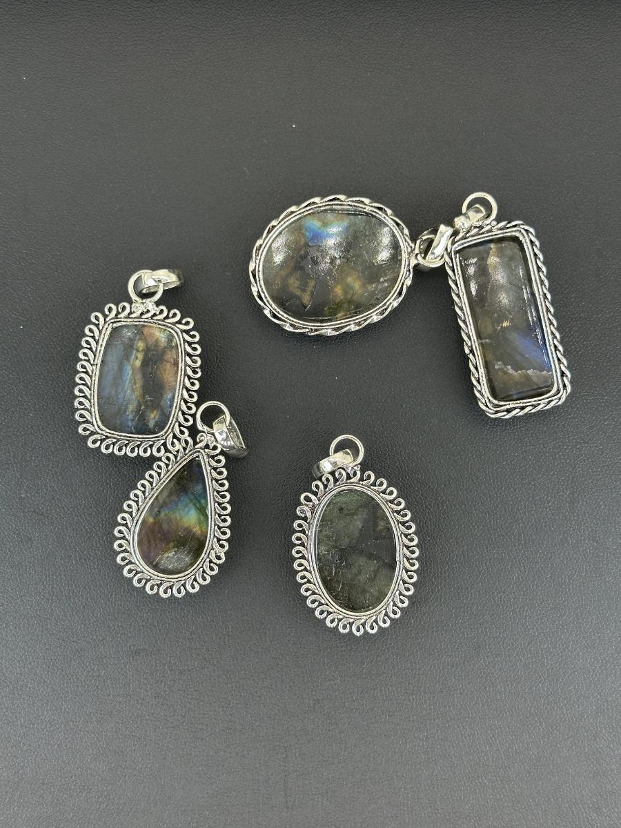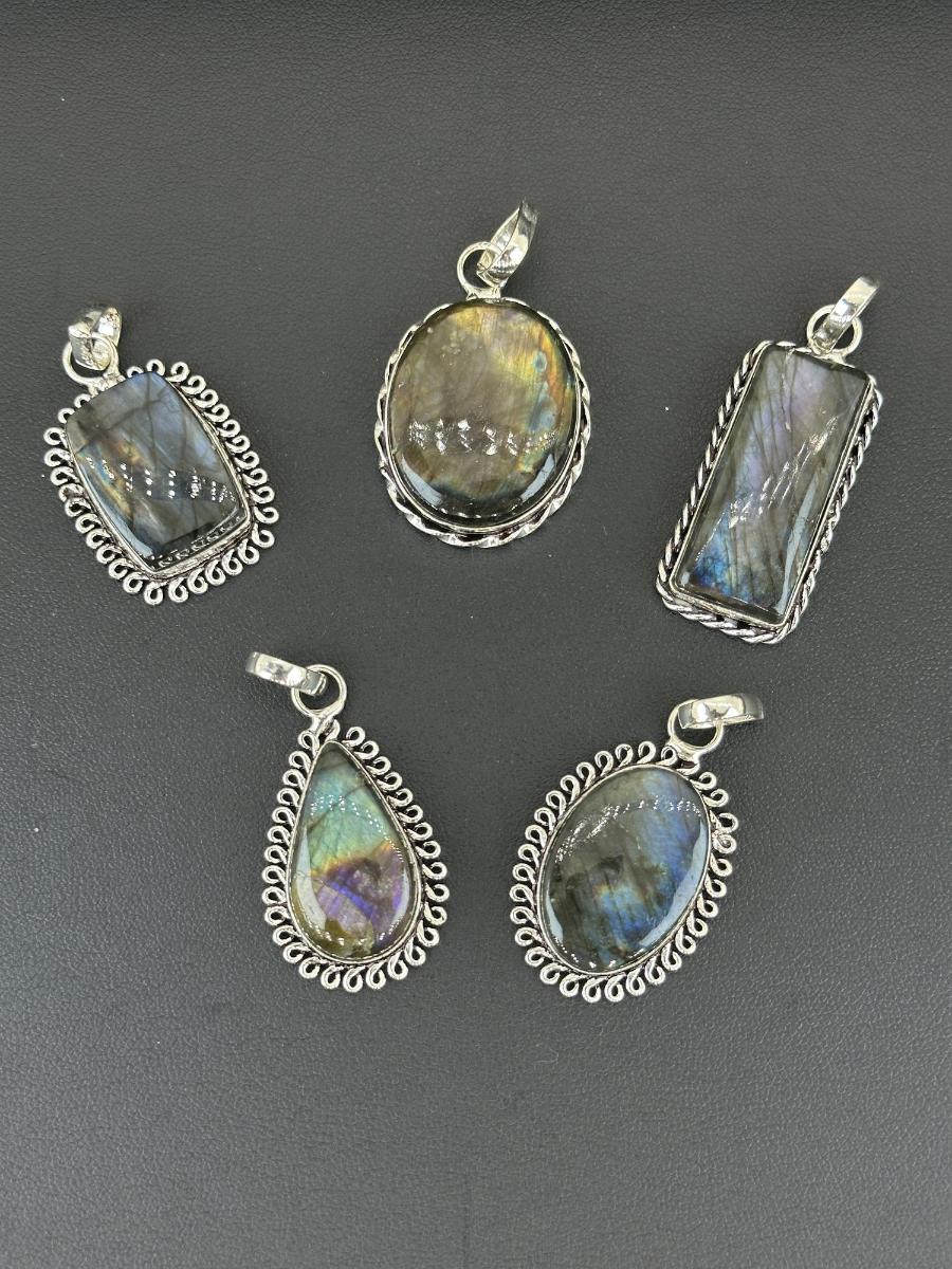 1. Labradorite Pendant Silver Plated Handmade Gemstone -No chain--Alloy Metal Silver Plated