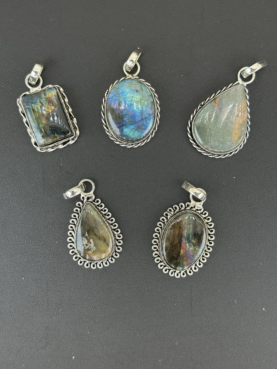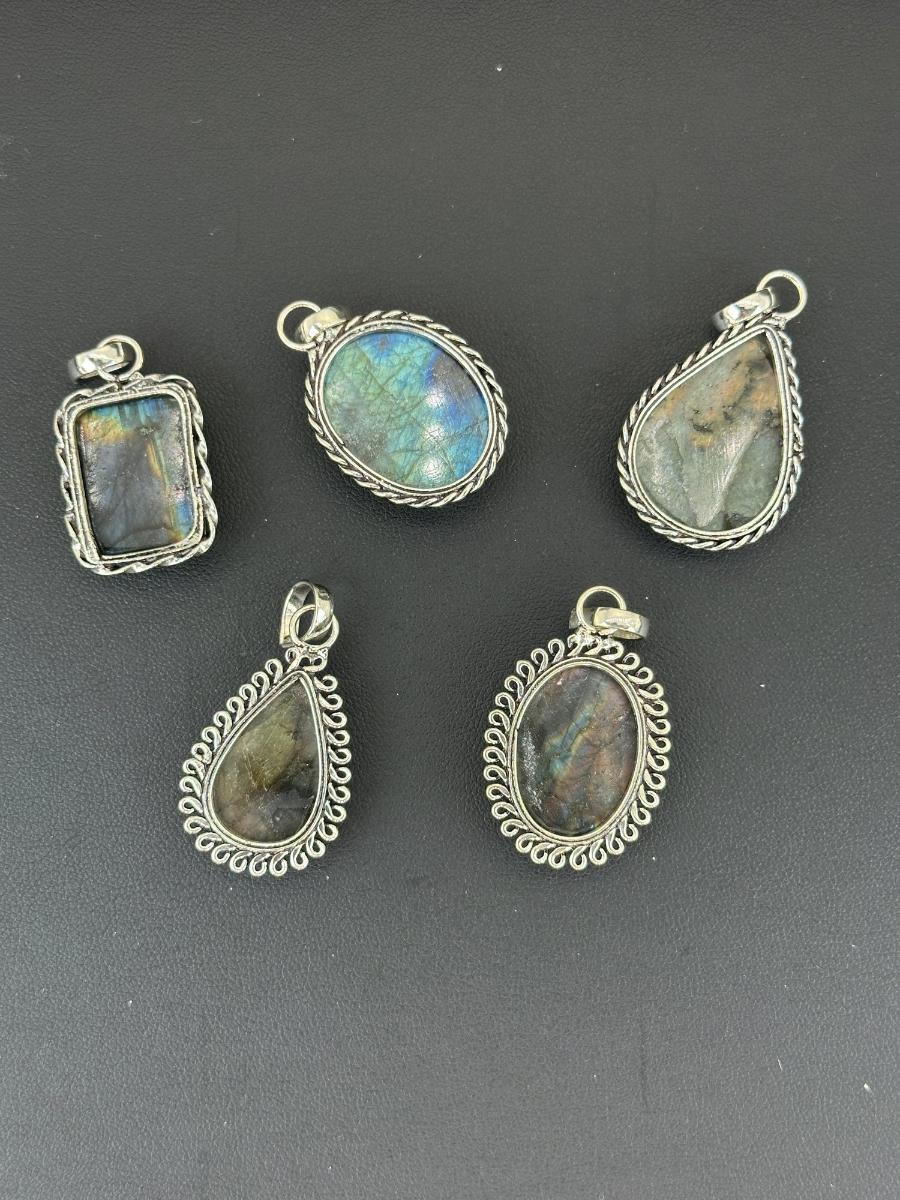 1. Labradorite Pendant Silver Plated Handmade Gemstone -No chain--Alloy Metal Silver Plated