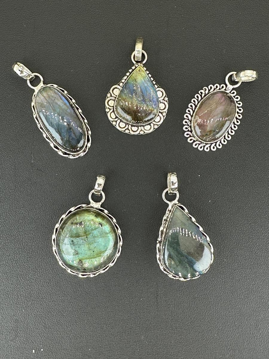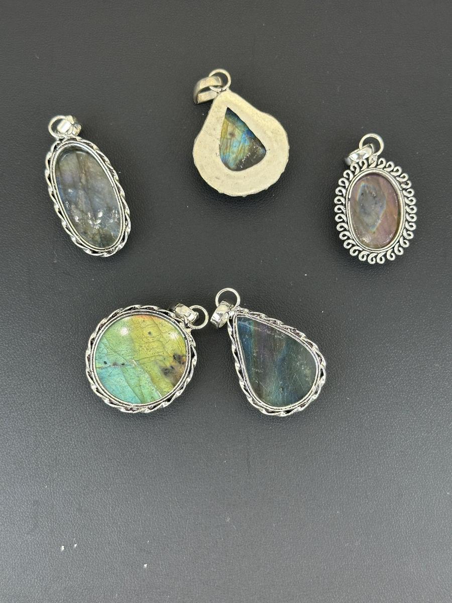 1. Labradorite Pendant Silver Plated Handmade Gemstone -No chain-Alloy Metal Silver Plated