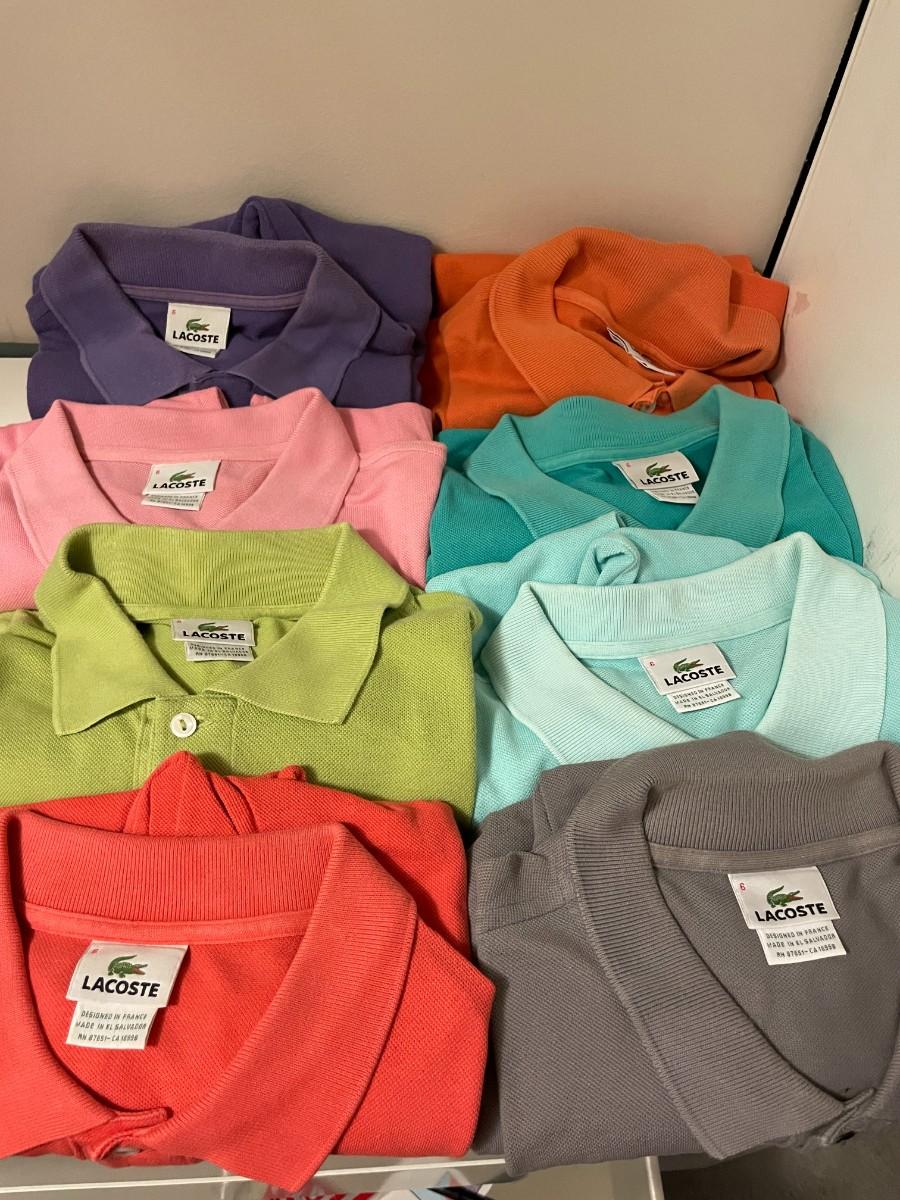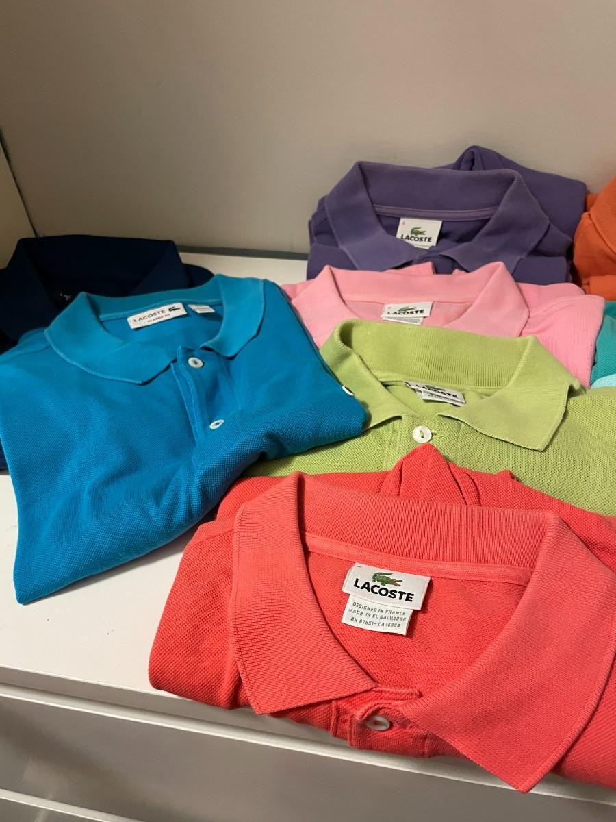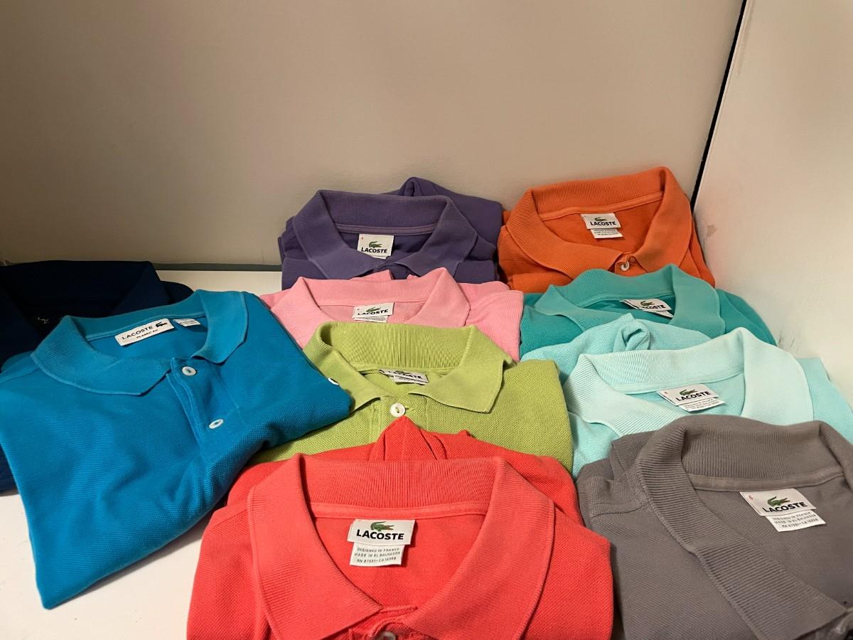 10 Lacaste Polo Style Short Sleeve Shirts, appear to be L