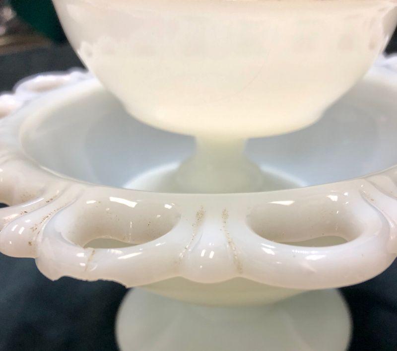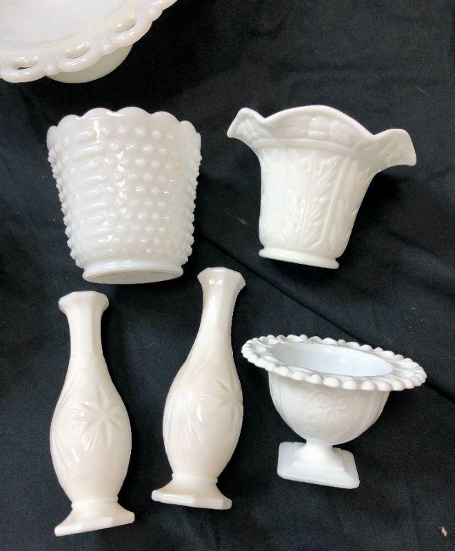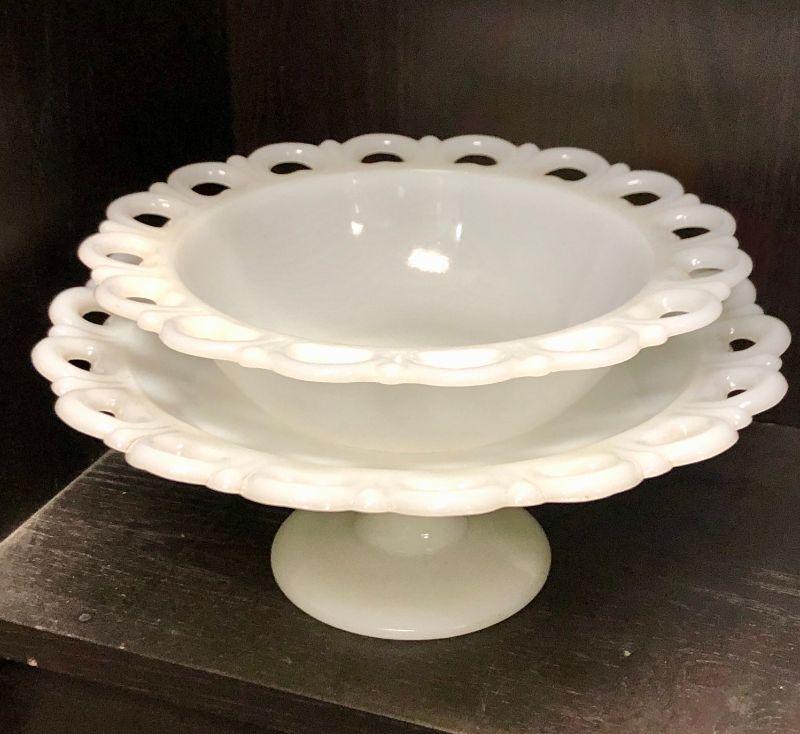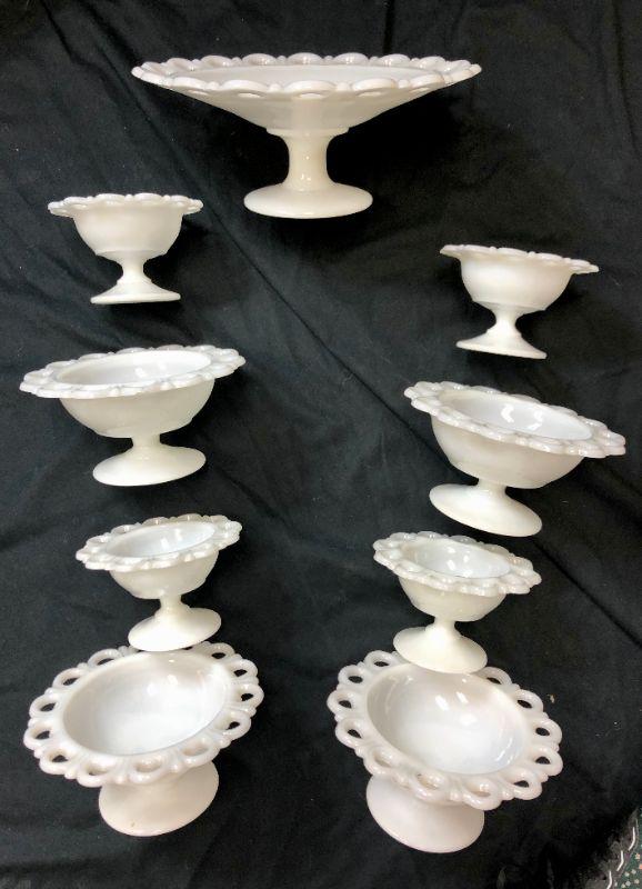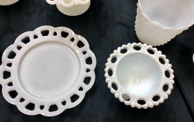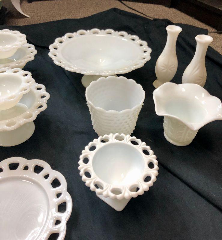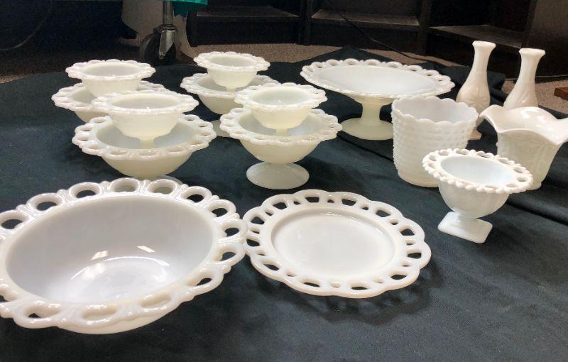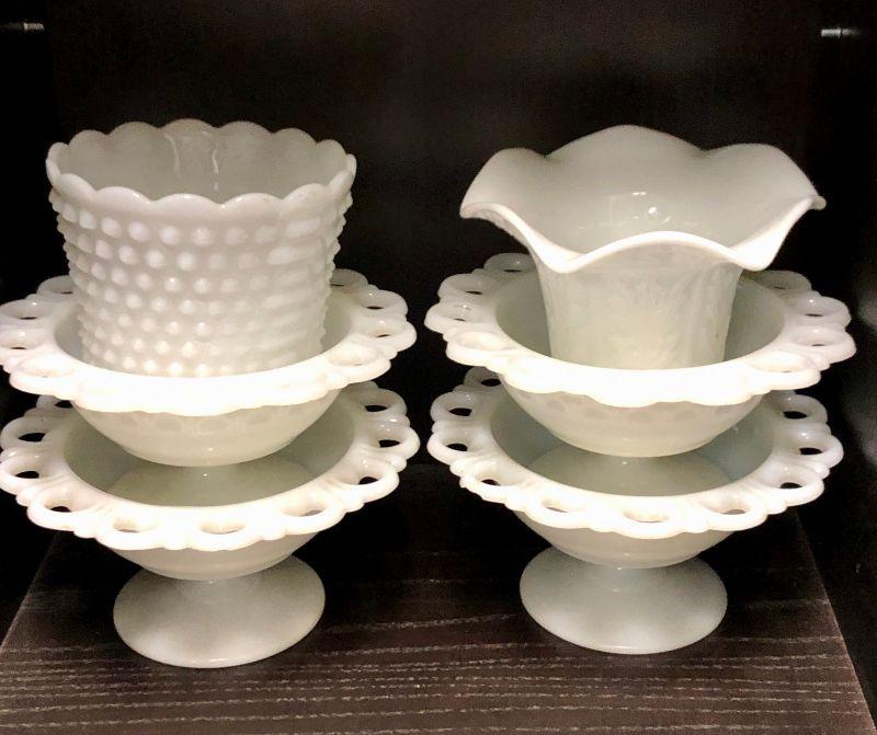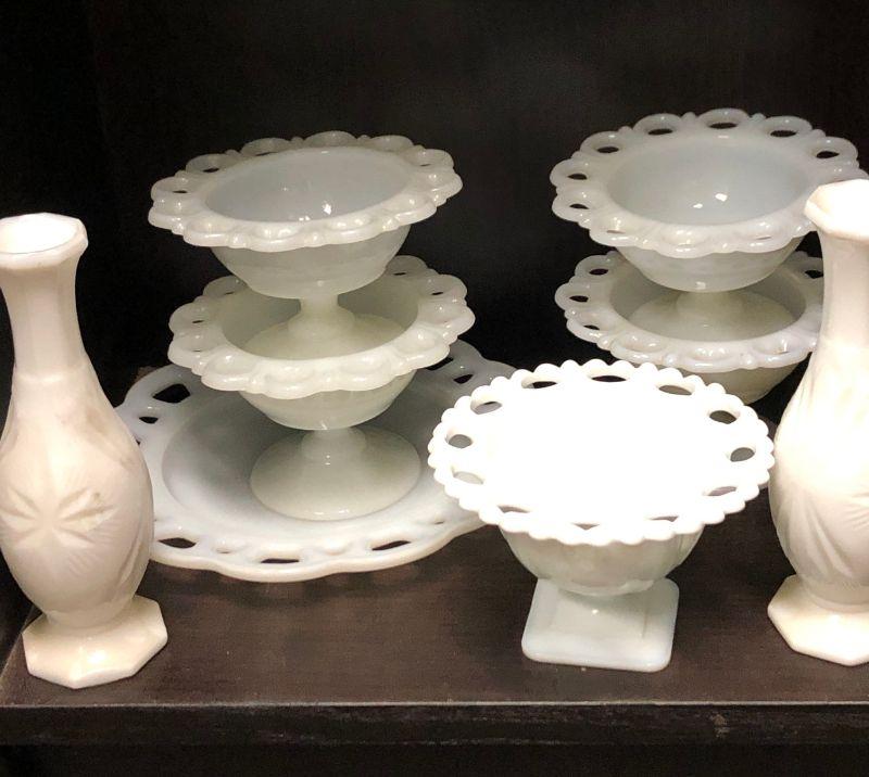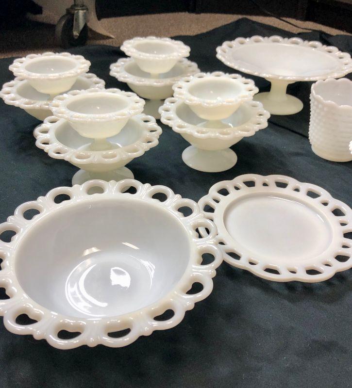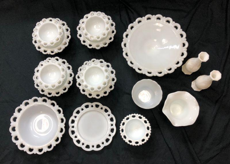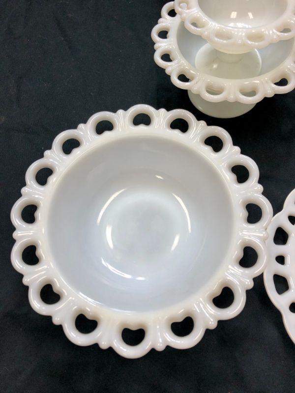 Lace Edge Milk Glass Lot with Extras