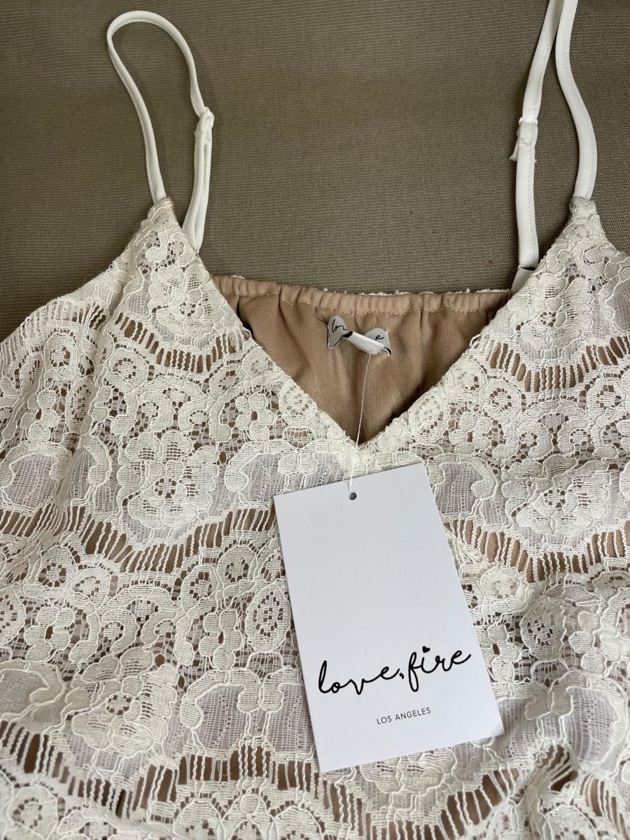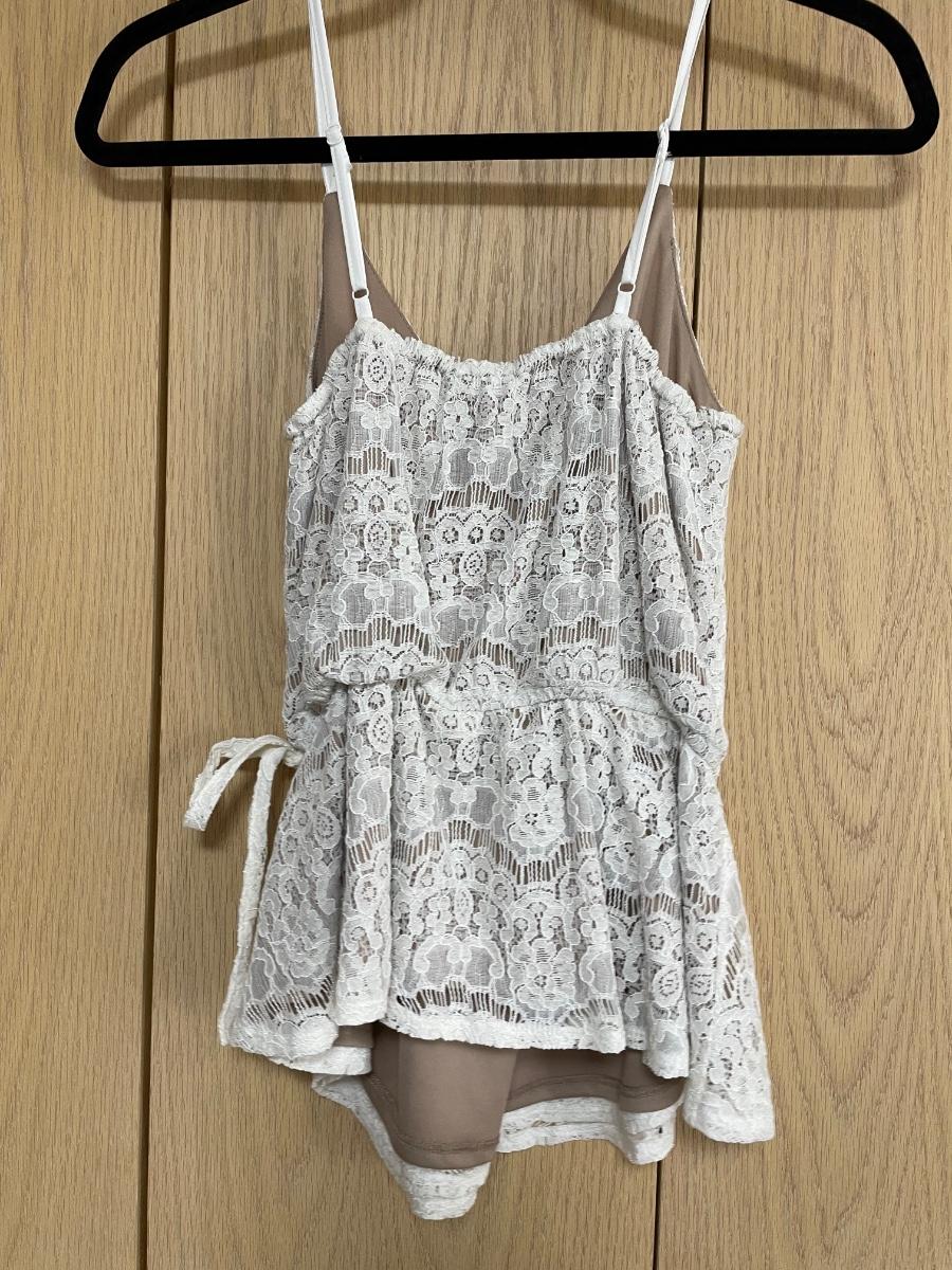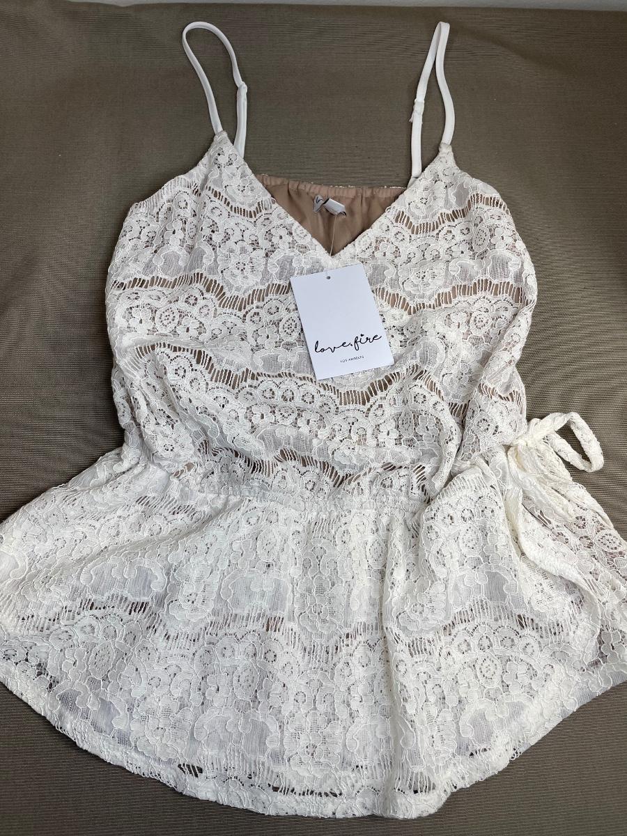 New with tags boutique tank with elastic waist, side tie and spaghetti straps. Size small. Fully lined.
