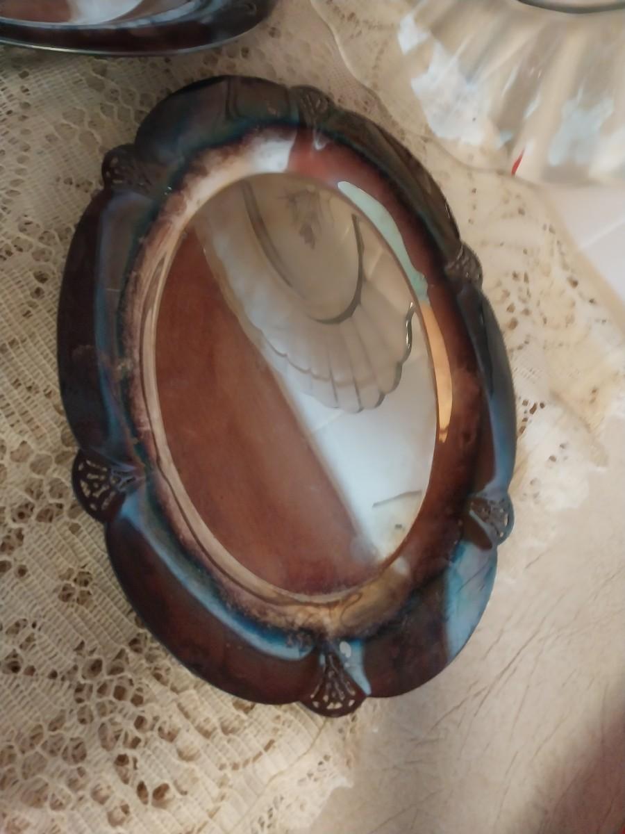LACE TABLECLOTH, 2 SILVER PLATED TRAYS AND A ROUND GLASS PLATTER