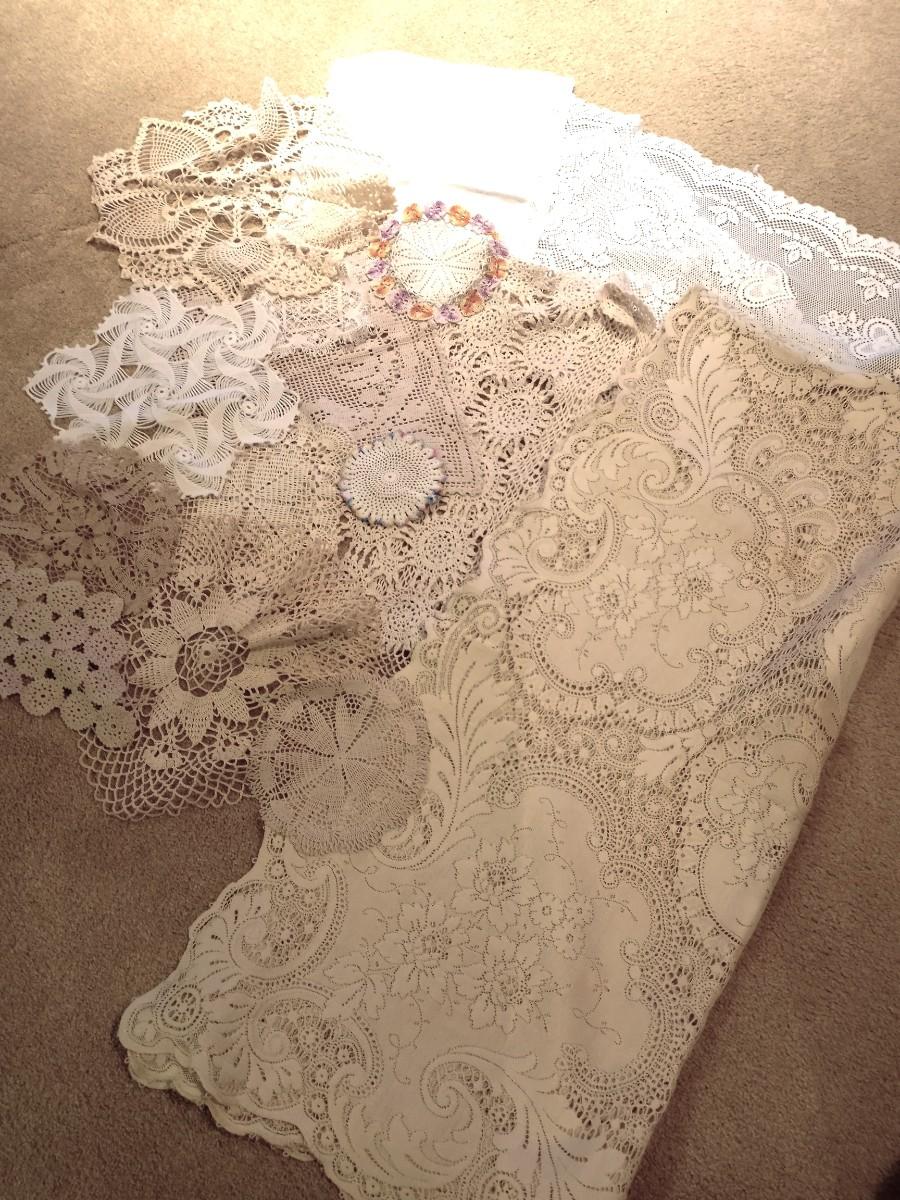 LACEY TABLE COVER APPROX.90X70 AND DOLLIES
