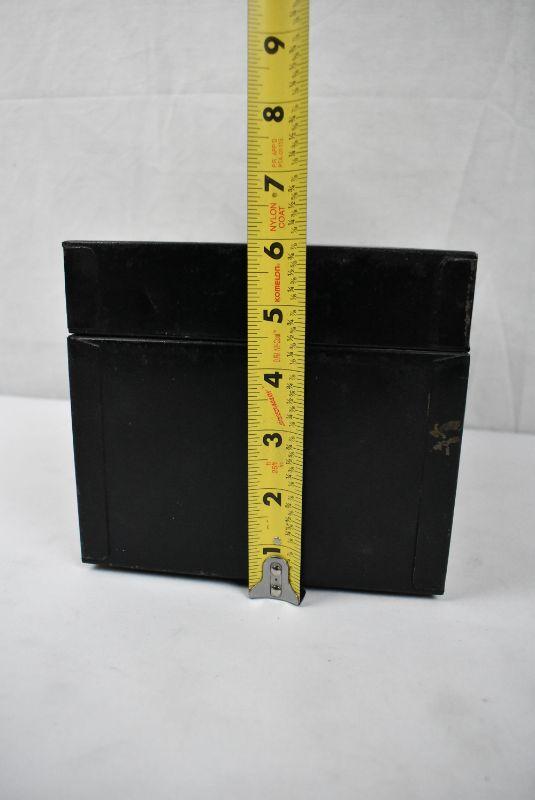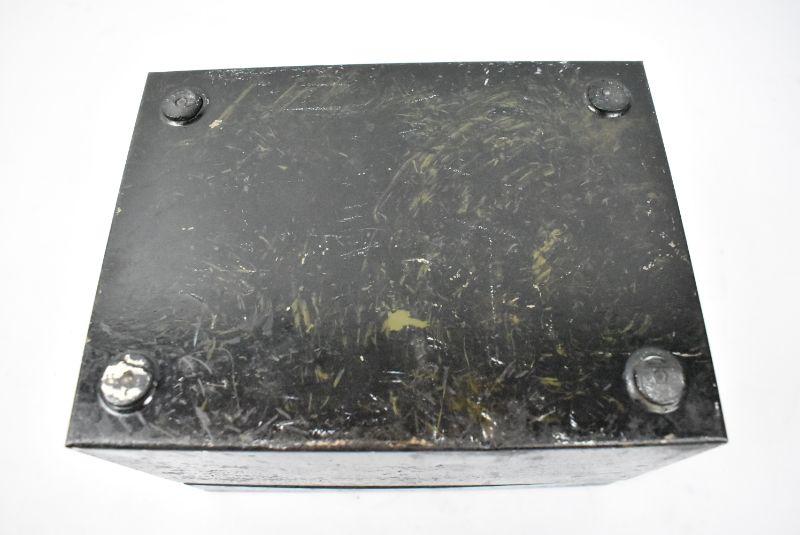 Black Metal Hinged Lid Box, Green inside, "Art Steel Co, New York" 8.75" x 6.5" x 6" - Vintage