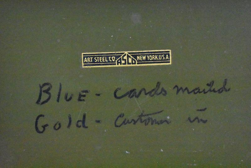 Black Metal Hinged Lid Box, Green inside, "Art Steel Co, New York" - Vintage