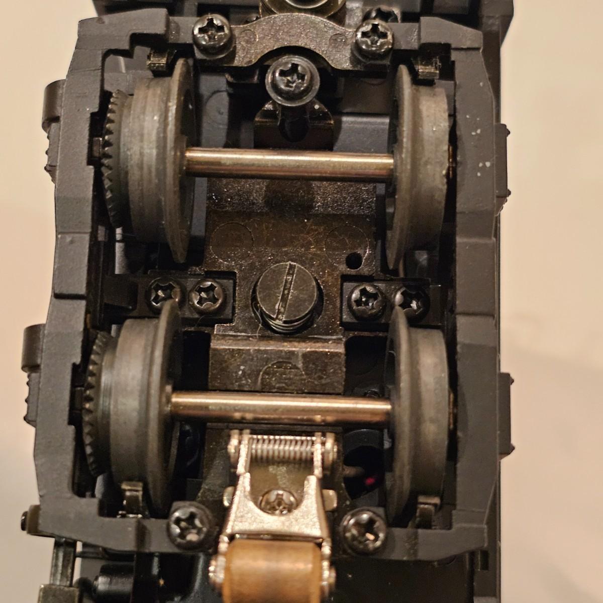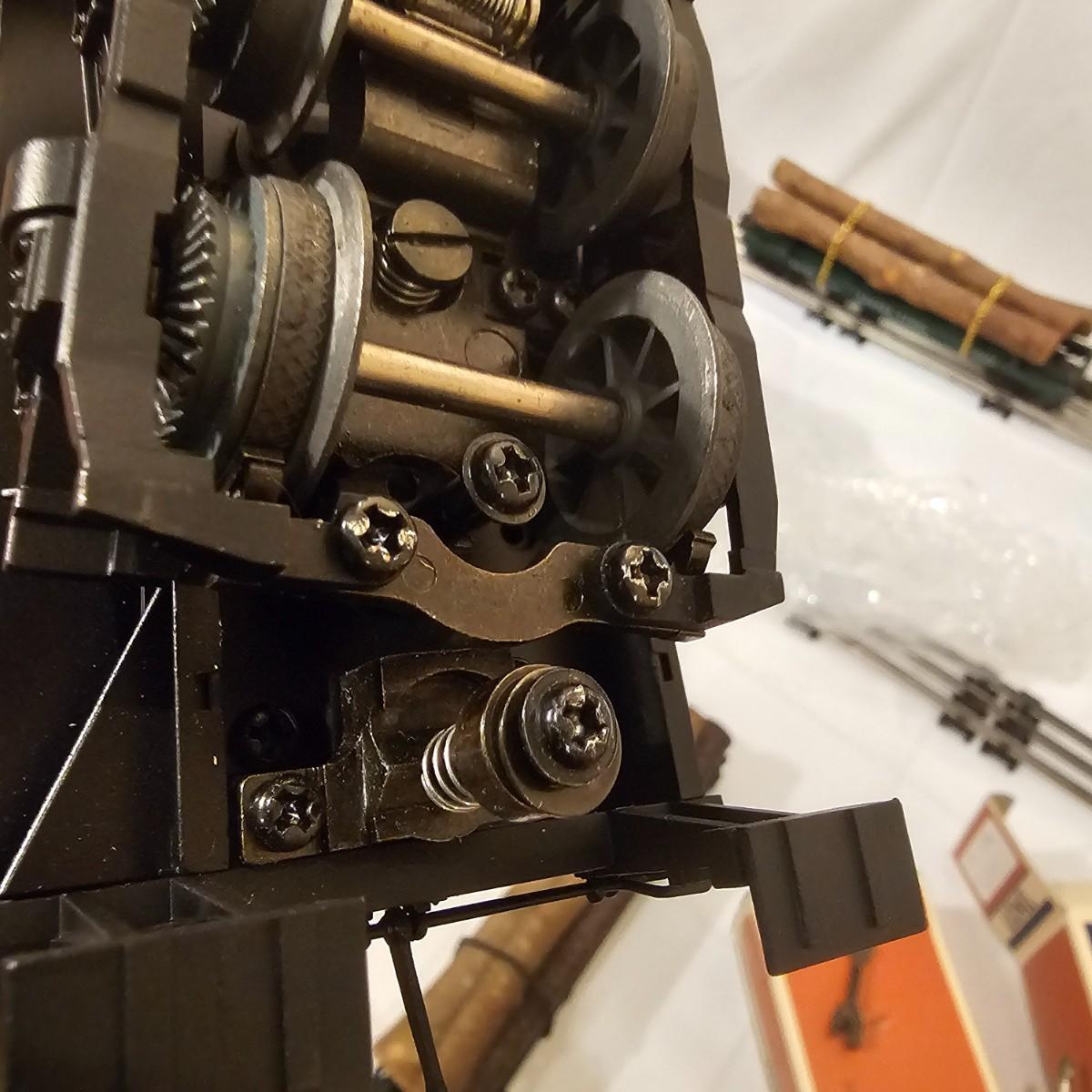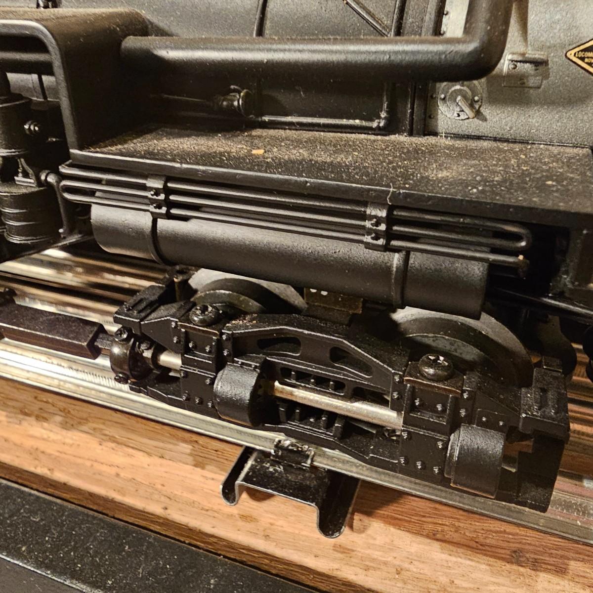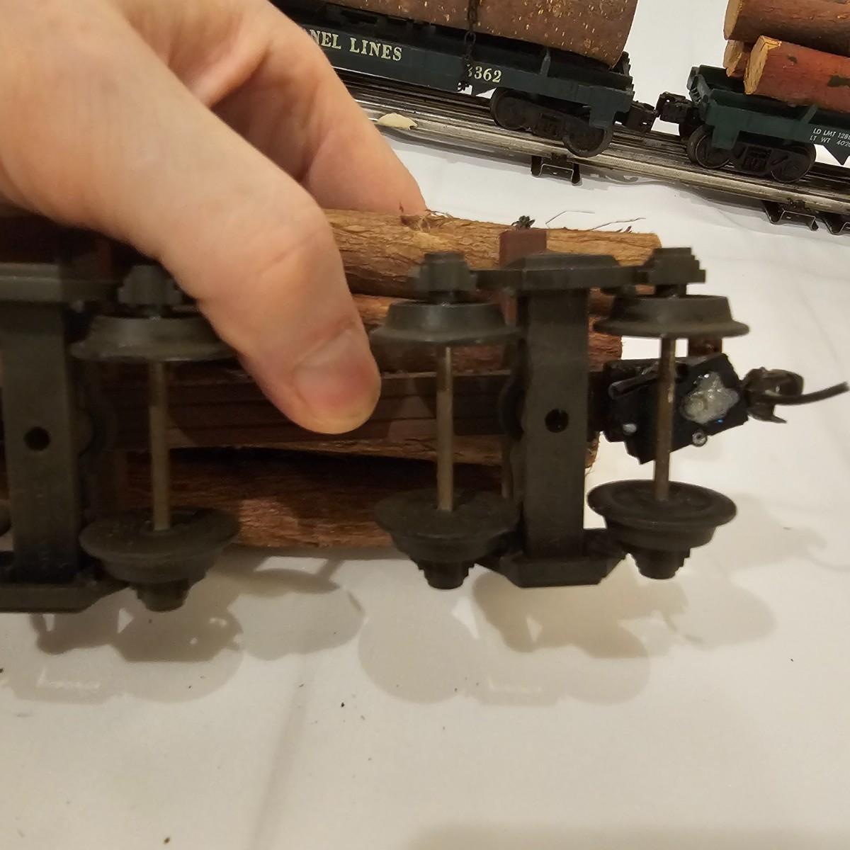 Captivating movement on this two truck Shay engine with side pistons and geared drive. One of several engines created for logging use in earlier times. Lackawanna Cola & Lumber #2 is a typical representation of these mighty units. This K-Line piece has digital whistle and bell, cruise control and synchronized puffing smoke. Engine started and ran on layout, other features not tested. 15" x 3" x 4.25"H. In original box, some wear and tear. Also included are five Lionel #6561 log cars with logs, two with boxes. 11" x 2" x 3"H. One smaller Westside Lumber log buggy with load, 7" x 3" x 3"H and Kadee style couplers. See photos for details. Please note that any price tag seen on an item was not put there by Sterling Transitions and does not reflect the current value of the item. Tracks in photos are not included with this lot, but available elsewhere in this auction. Shipping available.