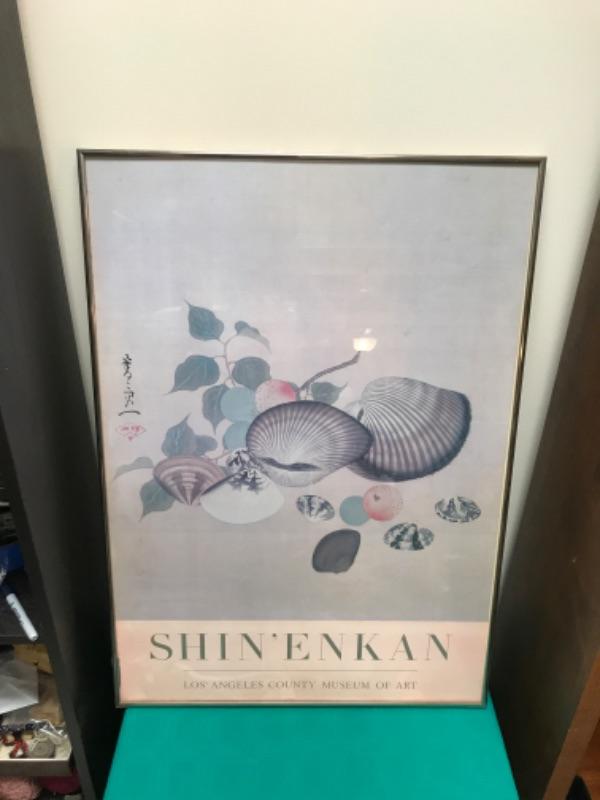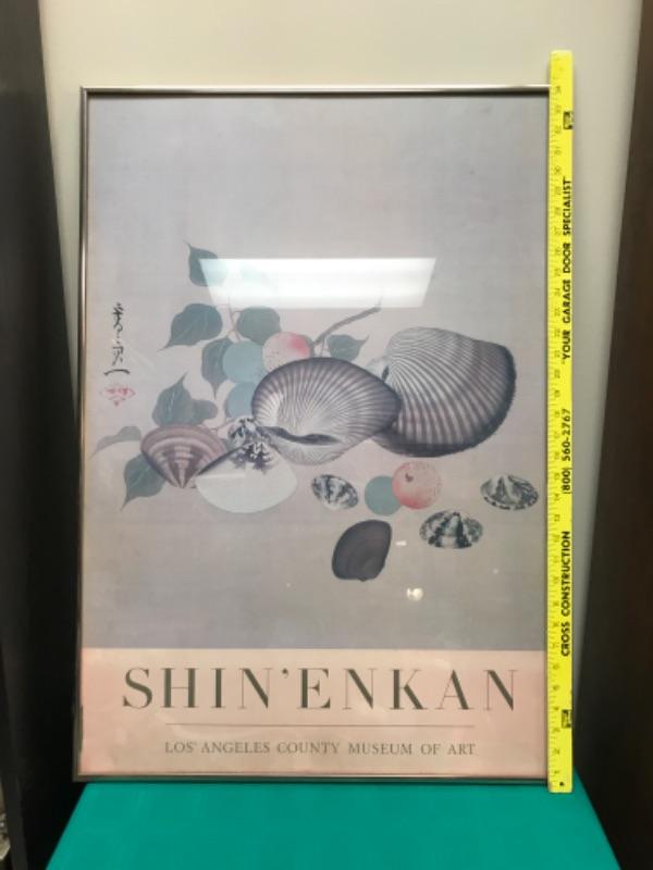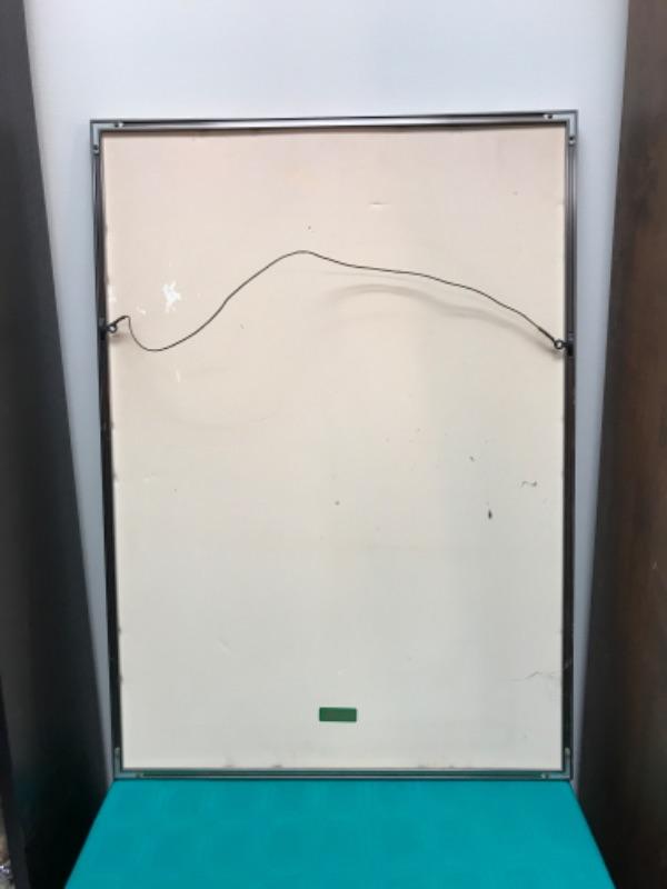 Measures approximately 34.25” x 24.25” in a silver metal frame. Has wire strap on rear to accommodate hanging.
