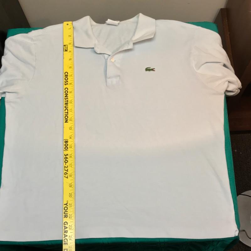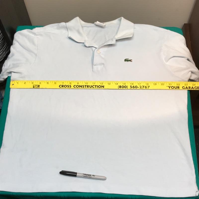 Appears white in the photos but it’s actually a very light powder blue. There is one small grease stain on the front that is visible in the pictures. See pictures for measurements.