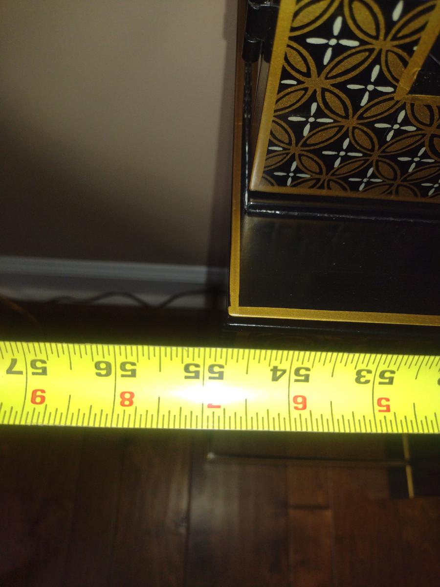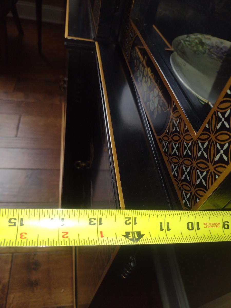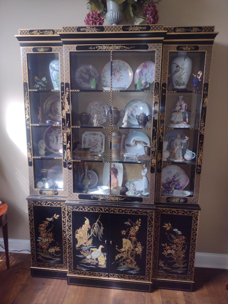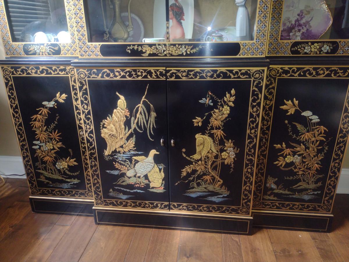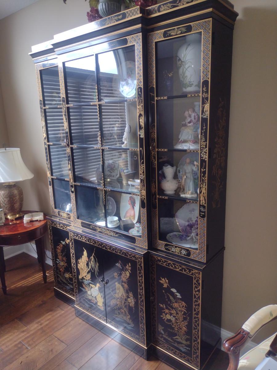 Lacquer Finish Asian Design Curio/China Lighted Display Cabinet- Approx 55" Wide, 12" Deep, 79 1/2" Tall (No Contents Included)