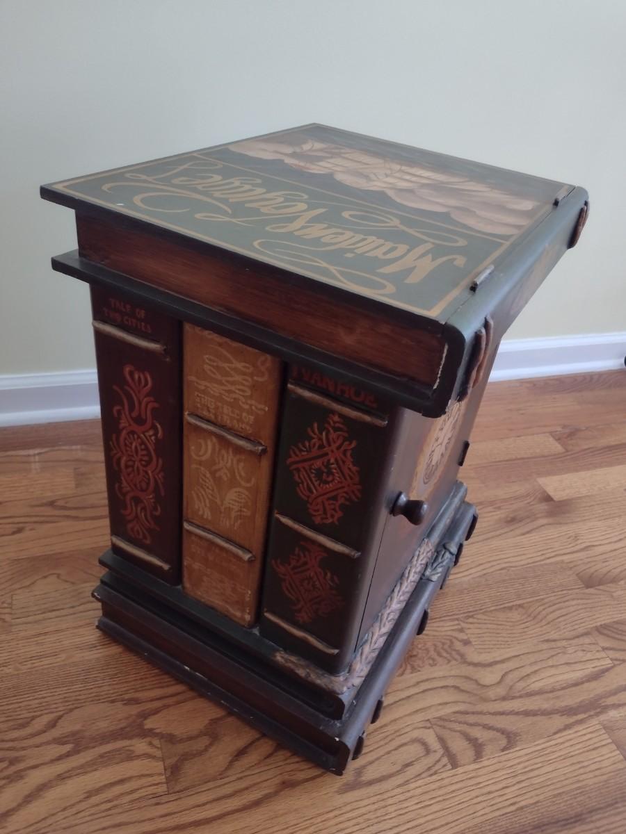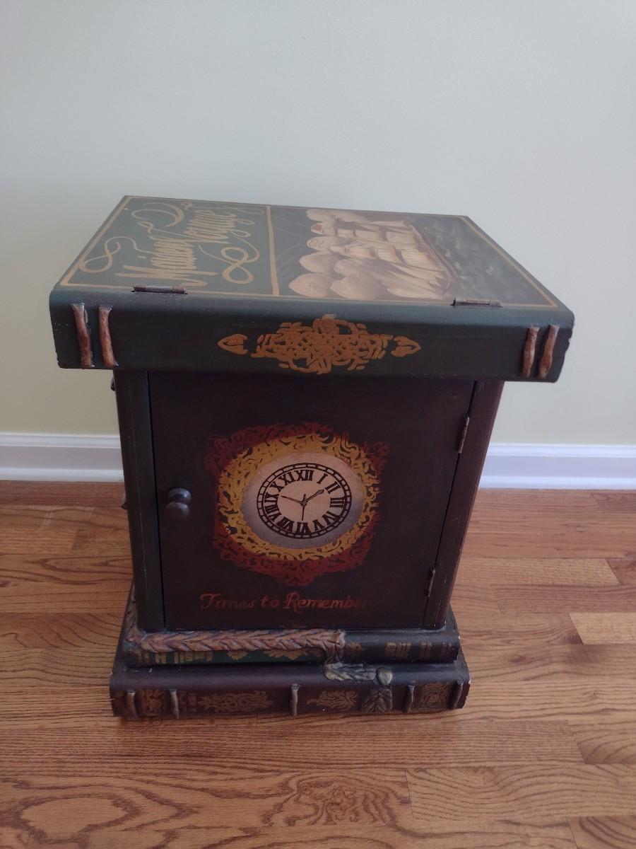 Lacquer Finish 'Book Stack' Mariner Themed End Table with Storage