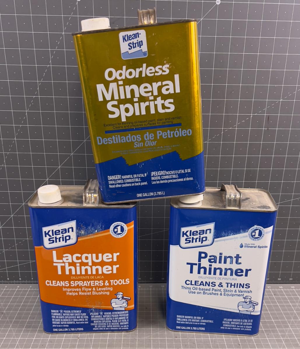 Lacquer Thinner (full), Paint Thinner (full), Mineral Spirits (1/3 full)