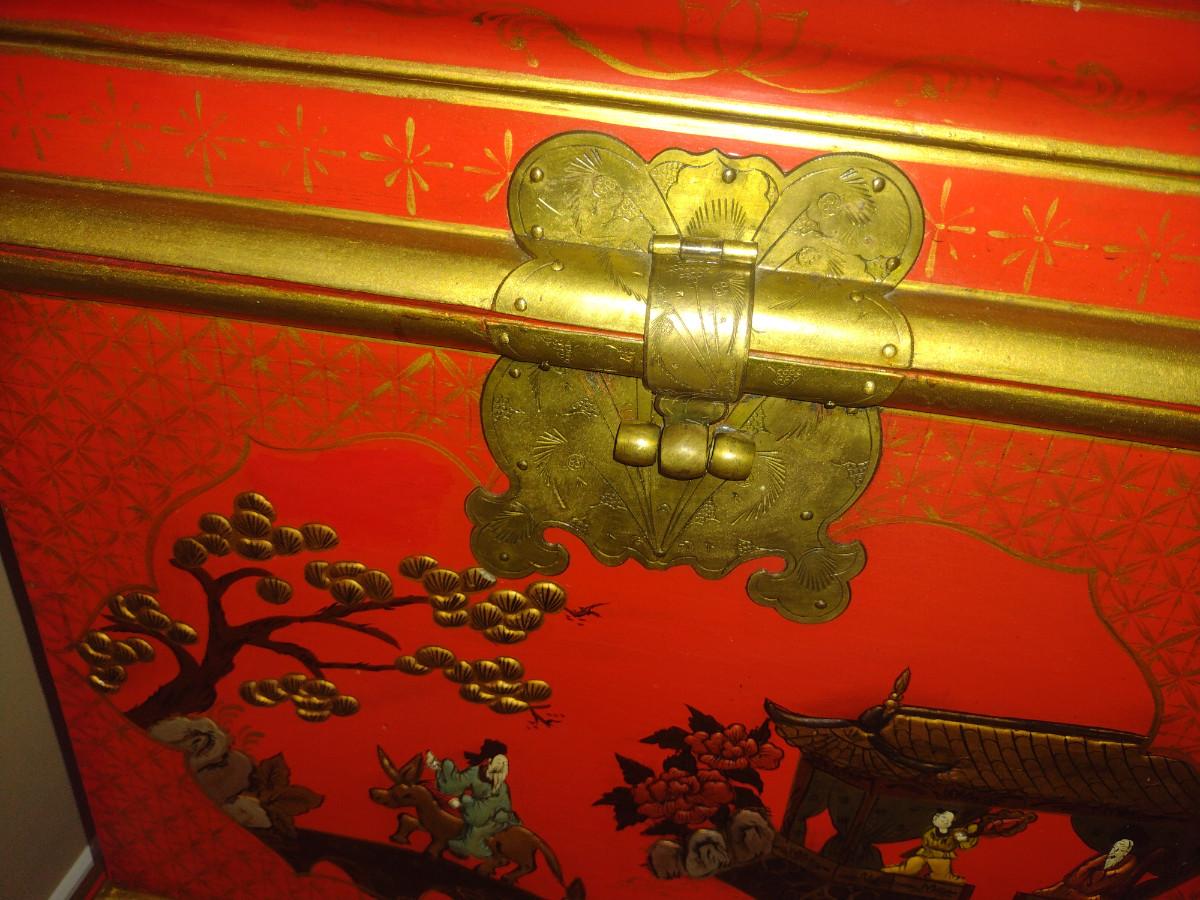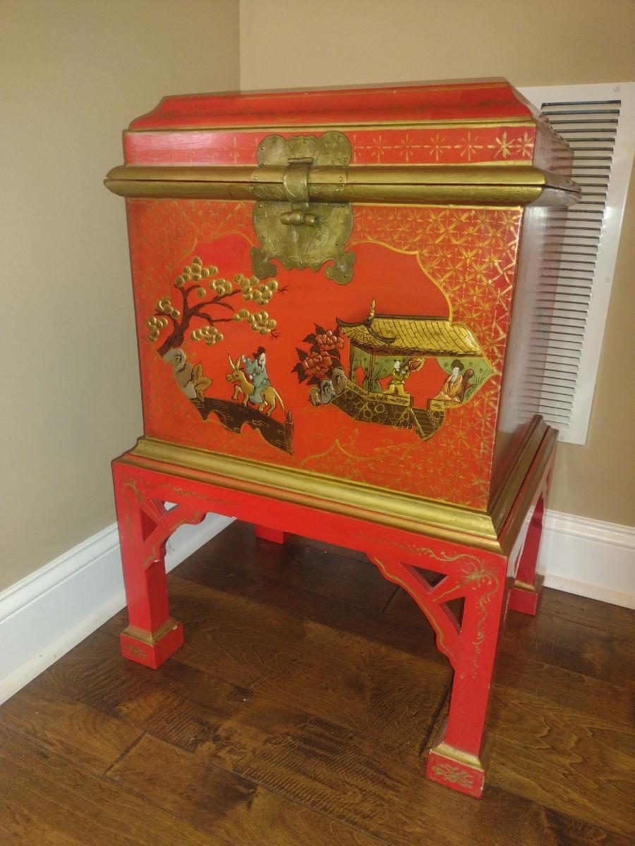 Lacquer Finish Asian Design Storage Box with Stand- Approx 19" x 15 1/2" x 30 1/4" Tall (No Contents Included)