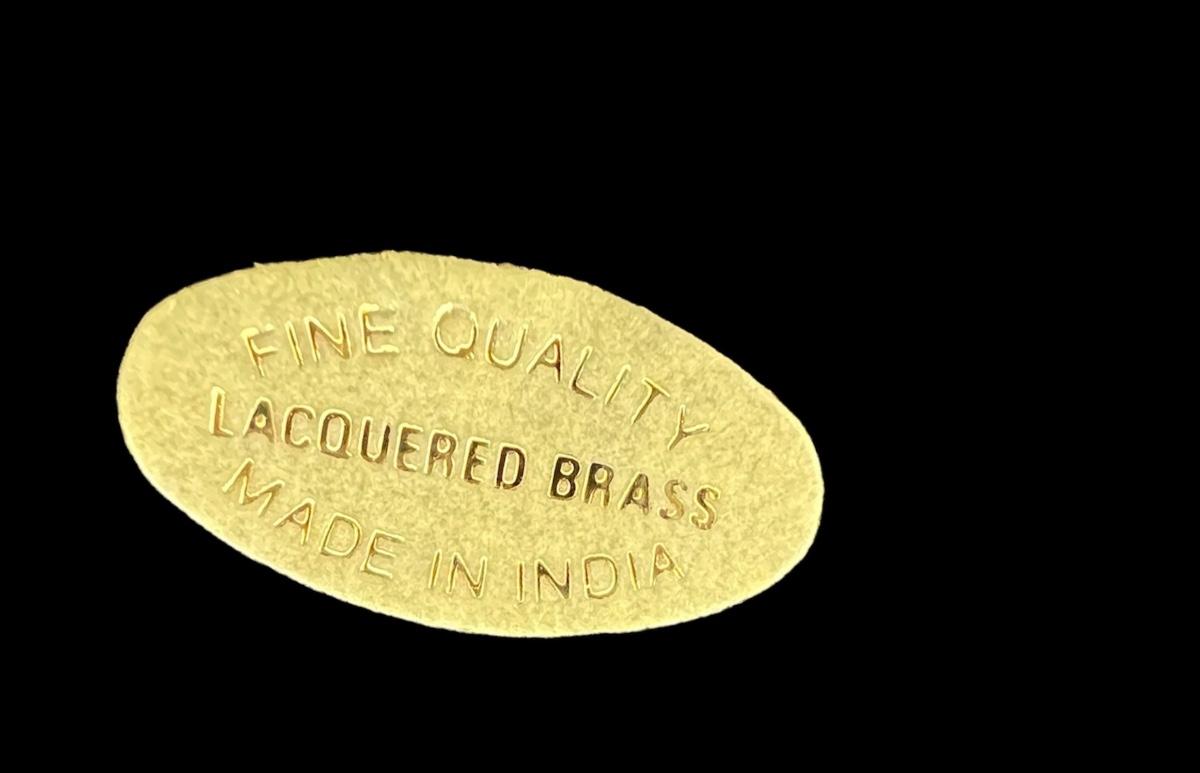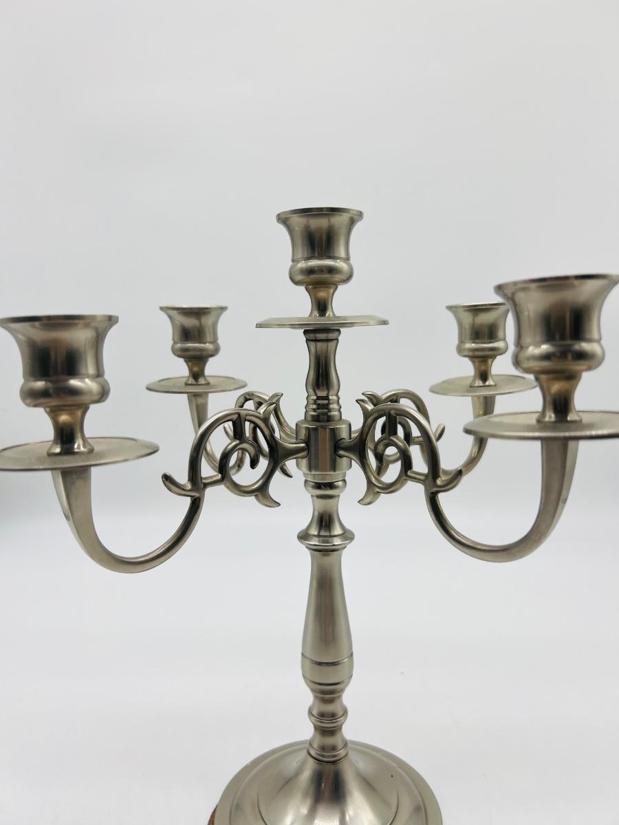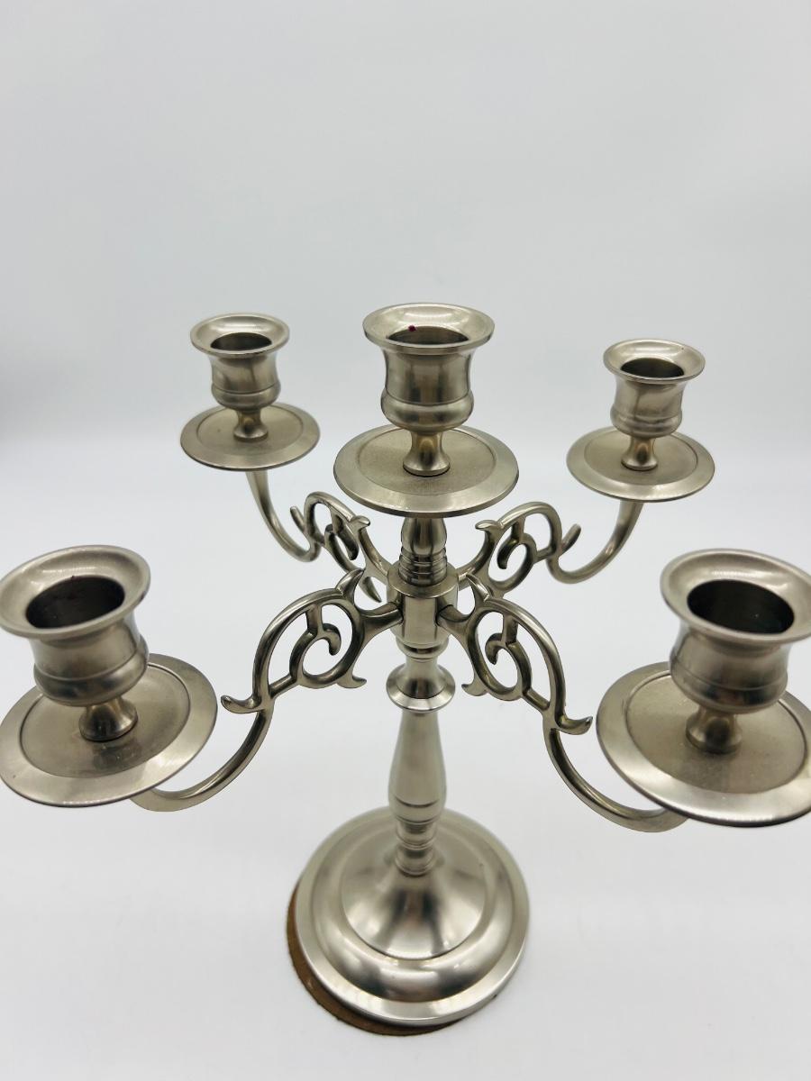 Gorgeous LACQUERED BRASS Five Arm Candelabra made in India measures 11 1/2 inches tall.