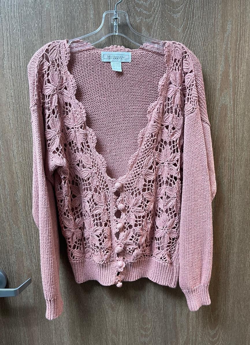 Lacy rose pink cardigan sweater size L large Melbourne Elements