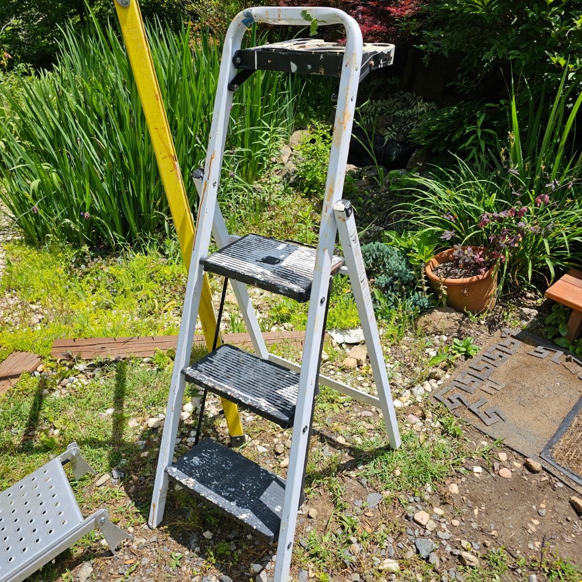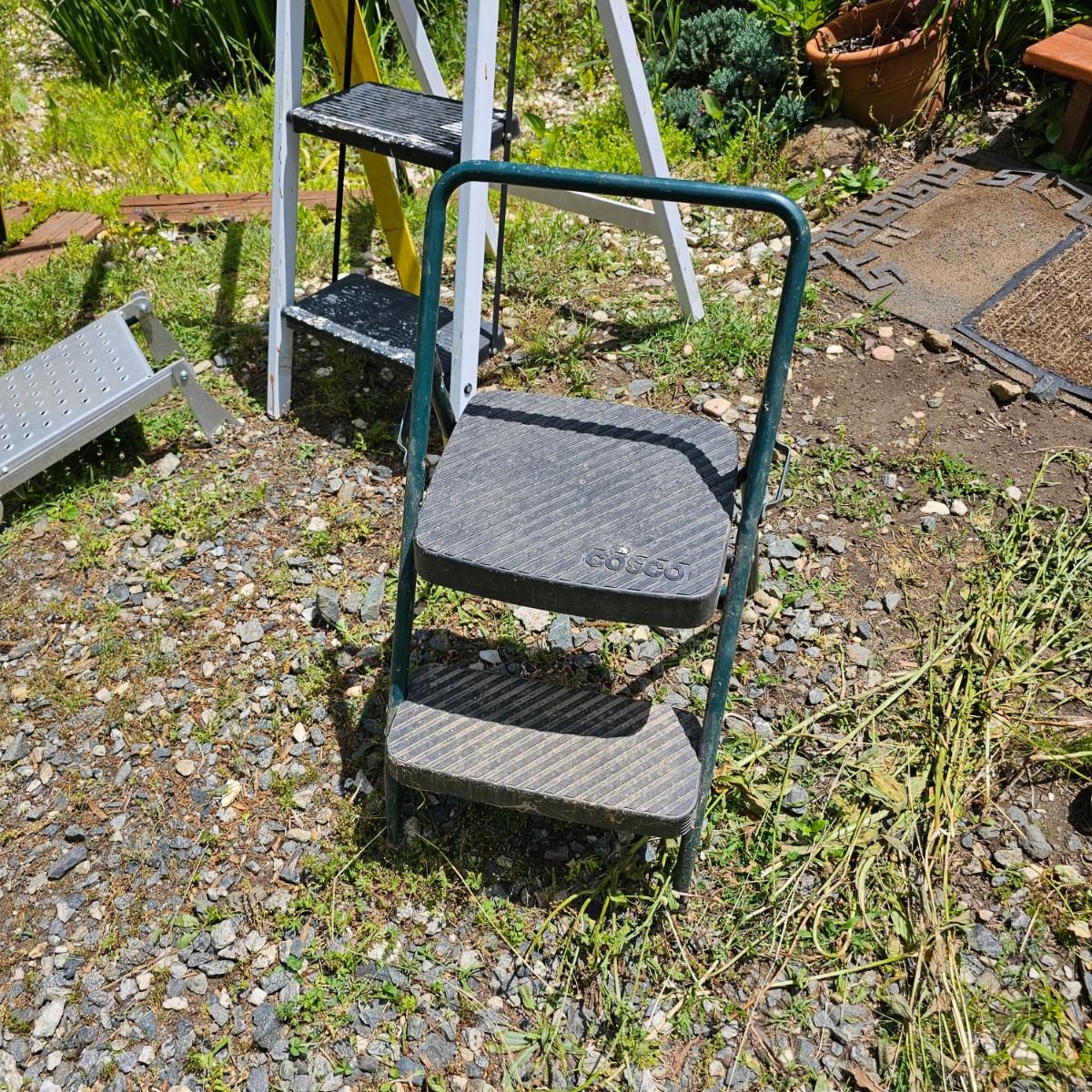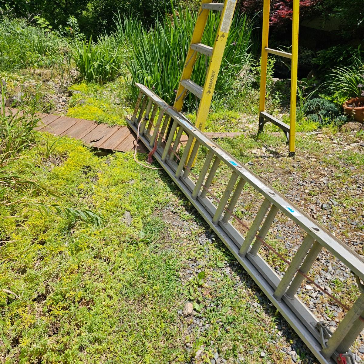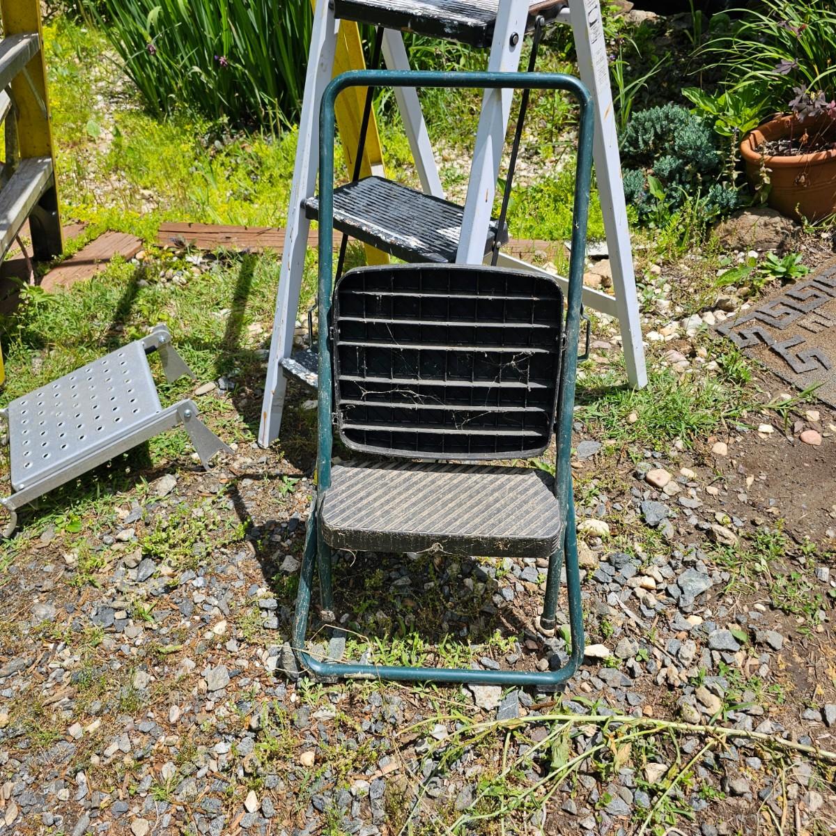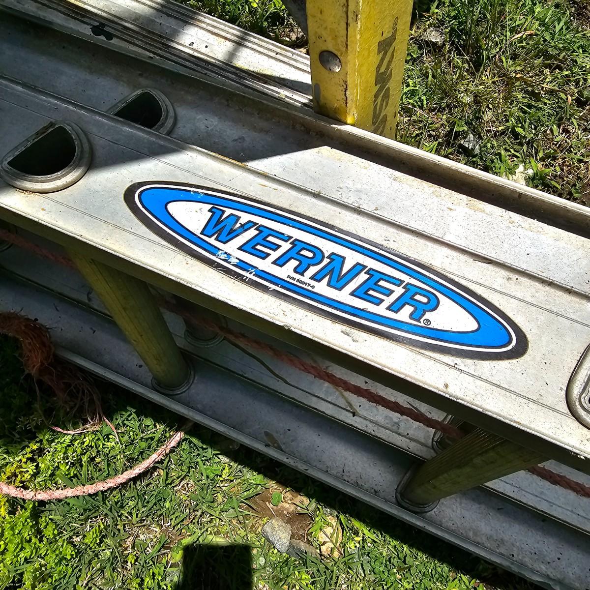 A mixture of different sizes of ladders for every need. One short two step Cosco stool, 16" x 18" x 26"H. One three step ladder with work tray, 26" x 20" x 52"H. A Husky yellow fiberglass eight foot stepladder. And finally, one Werner aluminum 24 foot extension ladder with grip feet and lifting rope. See photos for details. Local pickup only.