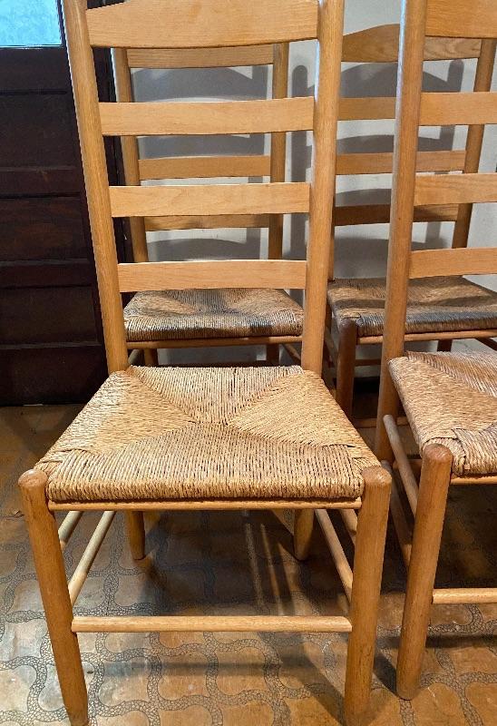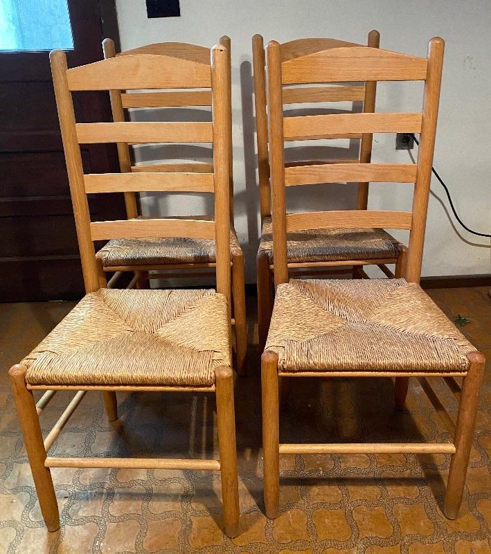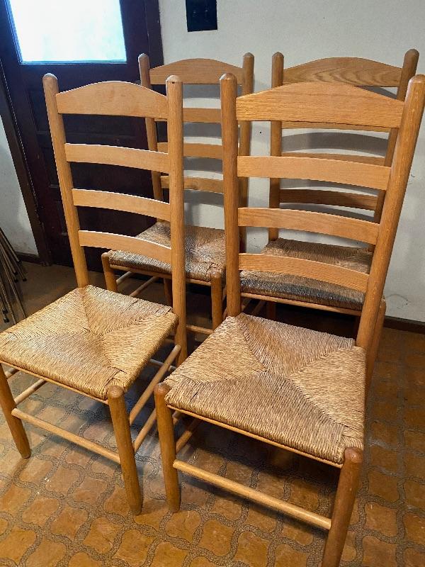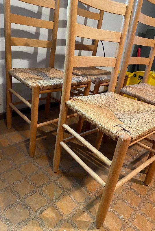 Gorgeous Ladder Back Chairs Rush Seat Chairs. Natural Wood Brown. Very solid in perfect condition. Set of 4.