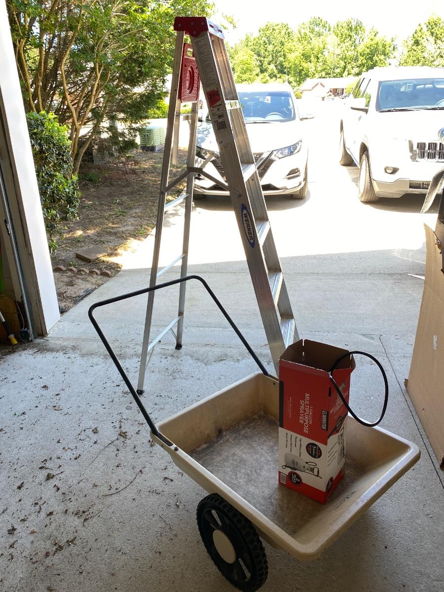 6 Ft Folding Werner Step Ladder, Easy Cart Garden Cart and Sprayer As Pictured